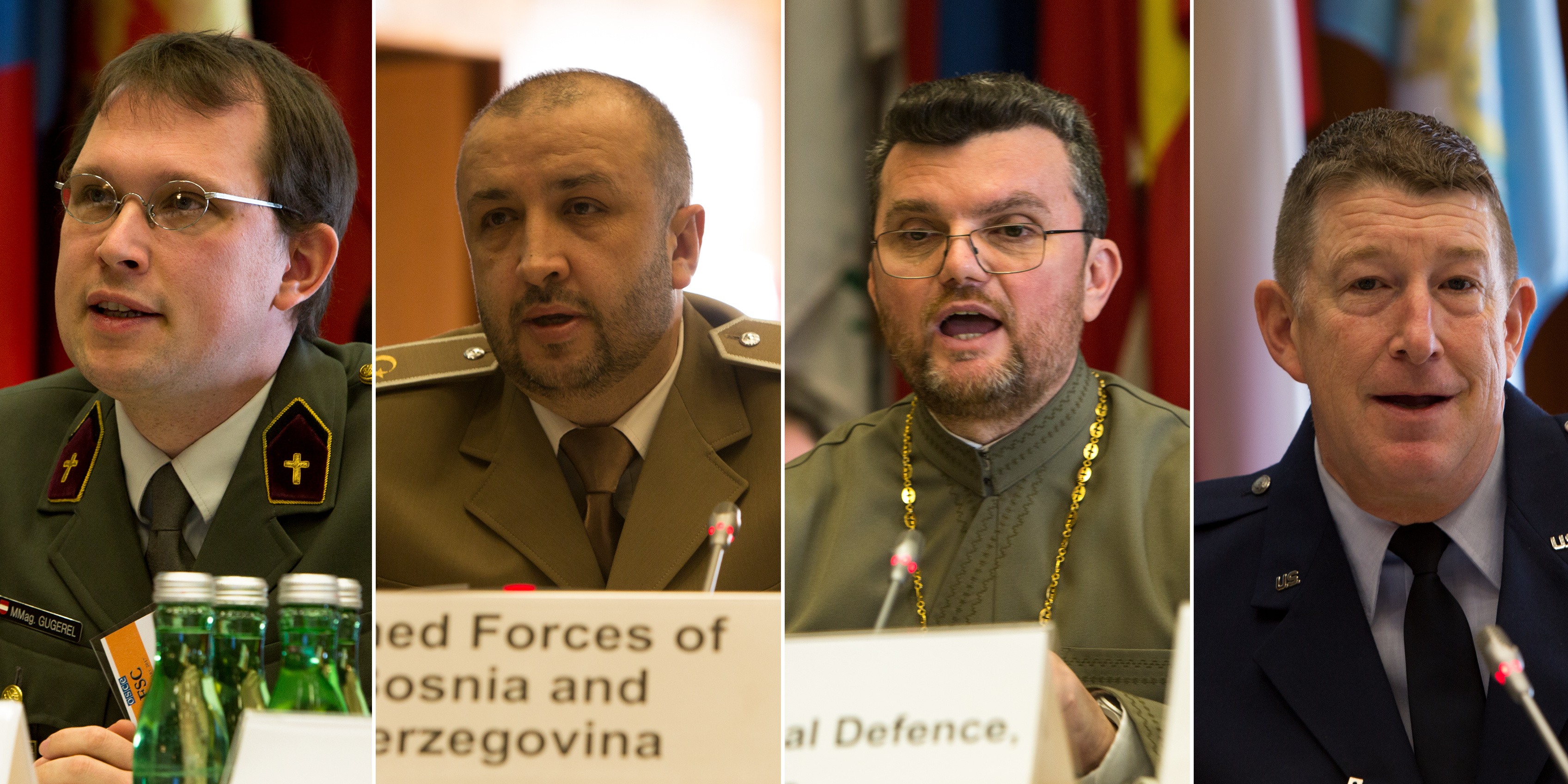 (l-r) Military chaplains representing the military forces of Austria, Bosnia and Herzegovina, Romania and the United States, speaking at a meeting of the Forum for Security Co-operation in Vienna, 15 February 2017.