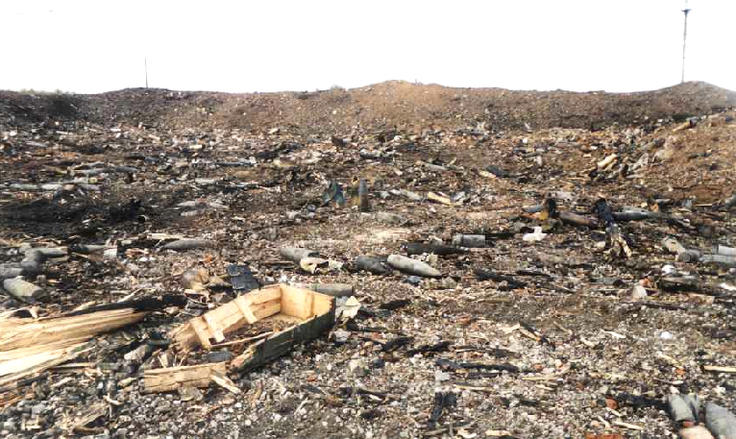 Devastation after an explosion at a ground ammunition storage site. OSCE's Forum for Security Co-operation focuses on destroying stockpiles of deteriorating surplus conventional weapons and munitions, left over from the Cold War era.
