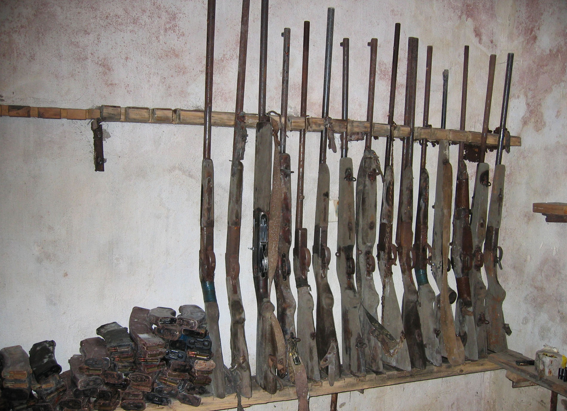 Rifles stored in Tajikistan, 2004. OSCE's Forum for Security Co-operation helps destroy stockpiles of deteriorating surplus conventional weapons and munitions.