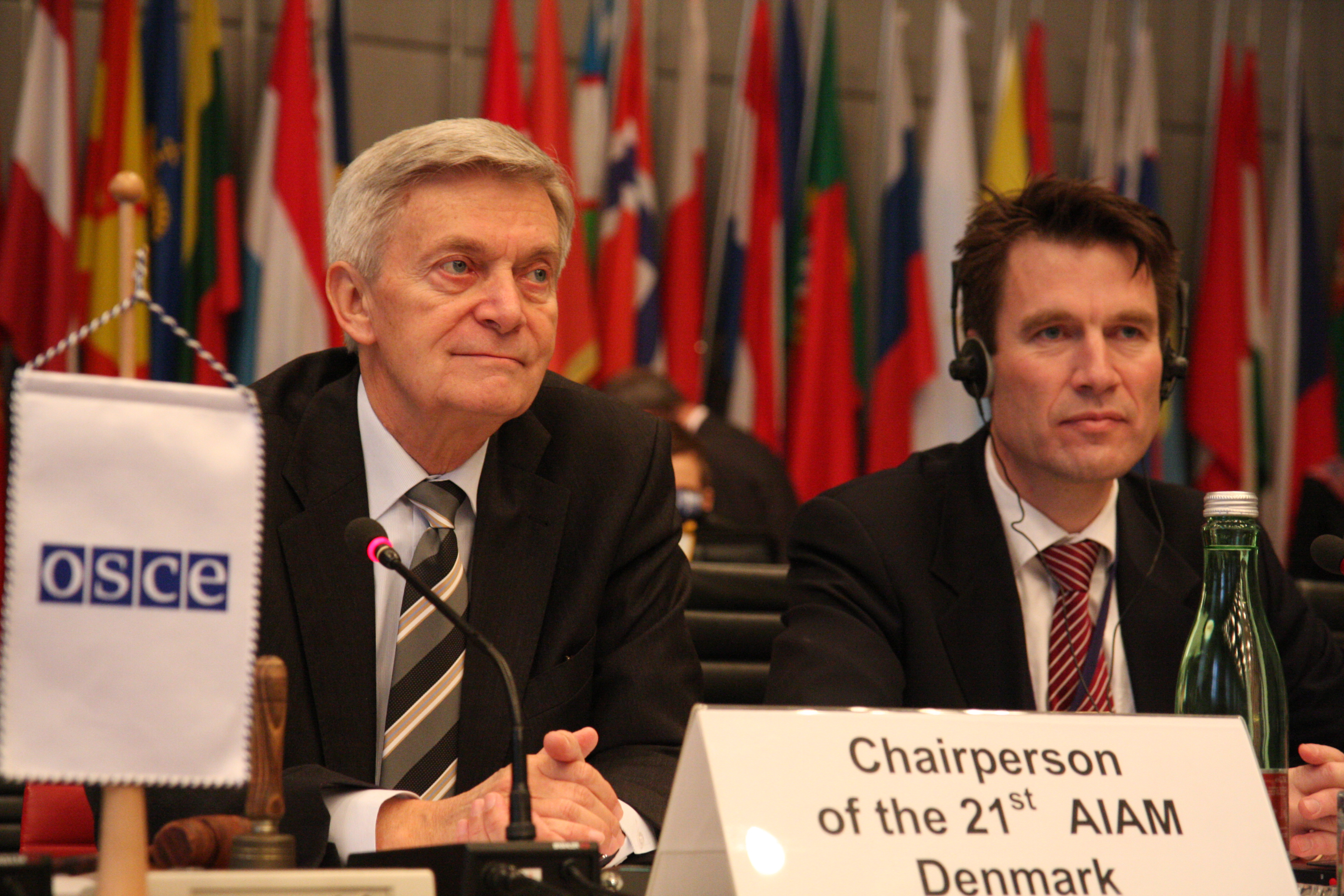 Ambassador John Bernhard, Chairperson, and Niels Petersen, Senior Military Adviser, from the Mission of Denmark to the OSCE, at the opening of the 21st Annual Implementation Assessment Meeting, 1 March 2011.