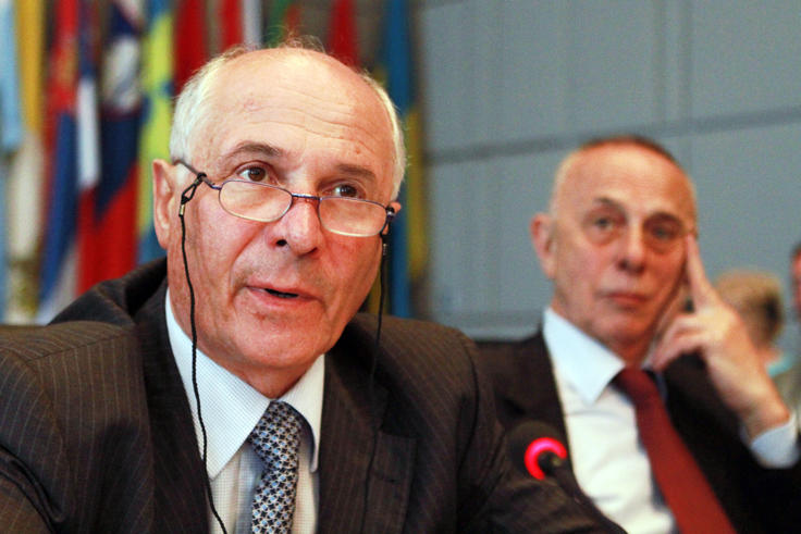 General (ret.) Vincenzo Camporini (l), speaking at the OSCE Forum for Security Co-operation alongside General (ret.) Carlo Jean, Vienna, 15 June 2011.