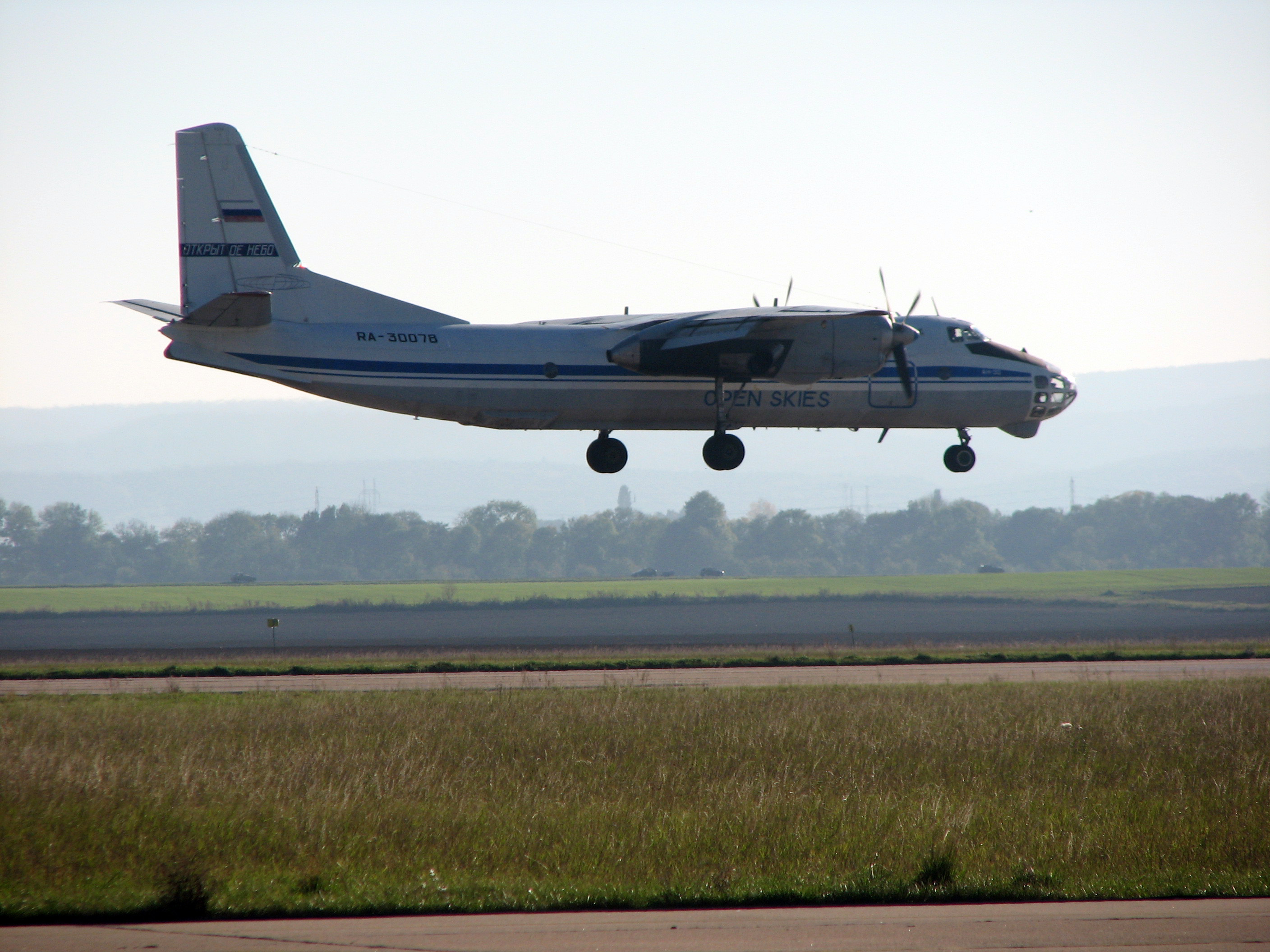 A Russian military Antonov-30 airplane performing a flight over the Czech Republic, October 2007, as part of the Open Skies Treaty. The treaty establishes a regime of unarmed aerial observation flights over the entire territory of its 34 signatories.
