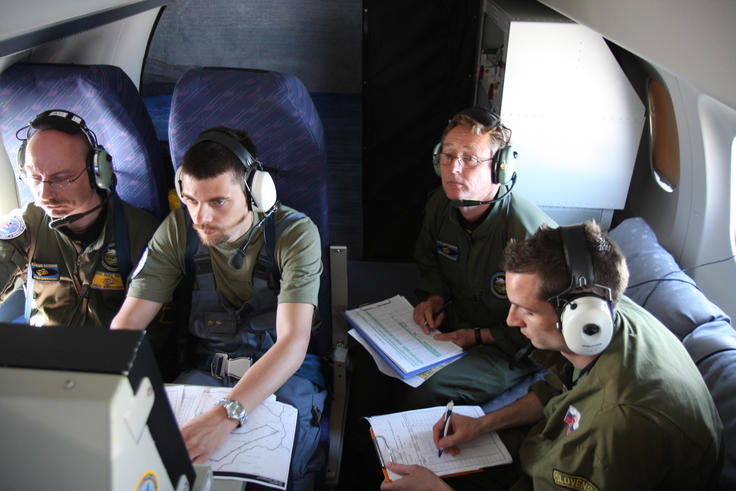 Monitoring equipment on board a Saab-340B aircraft during a joint US-Swedish training flight over Slovakia, 28 May 2008, under the Open Skies Treaty.