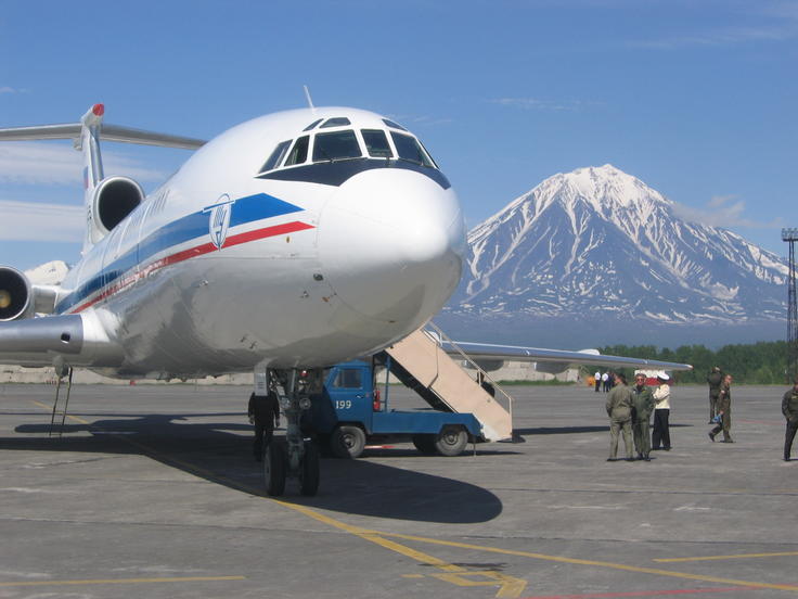 A Russian Tu-154 aircraft used for flights under the Open Skies Treaty at an airport in Kamchatka, Russia, 20 June 2005.