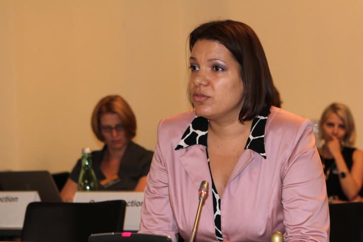 Rita Izsák, United Nations Independent Expert, speaking at an OSCE-organized roundtable discussion of ways to overcome existing barriers to the integration of migrant, minority and Roma and Sinti women into their communities and society, Vienna, 6 September 2012.
