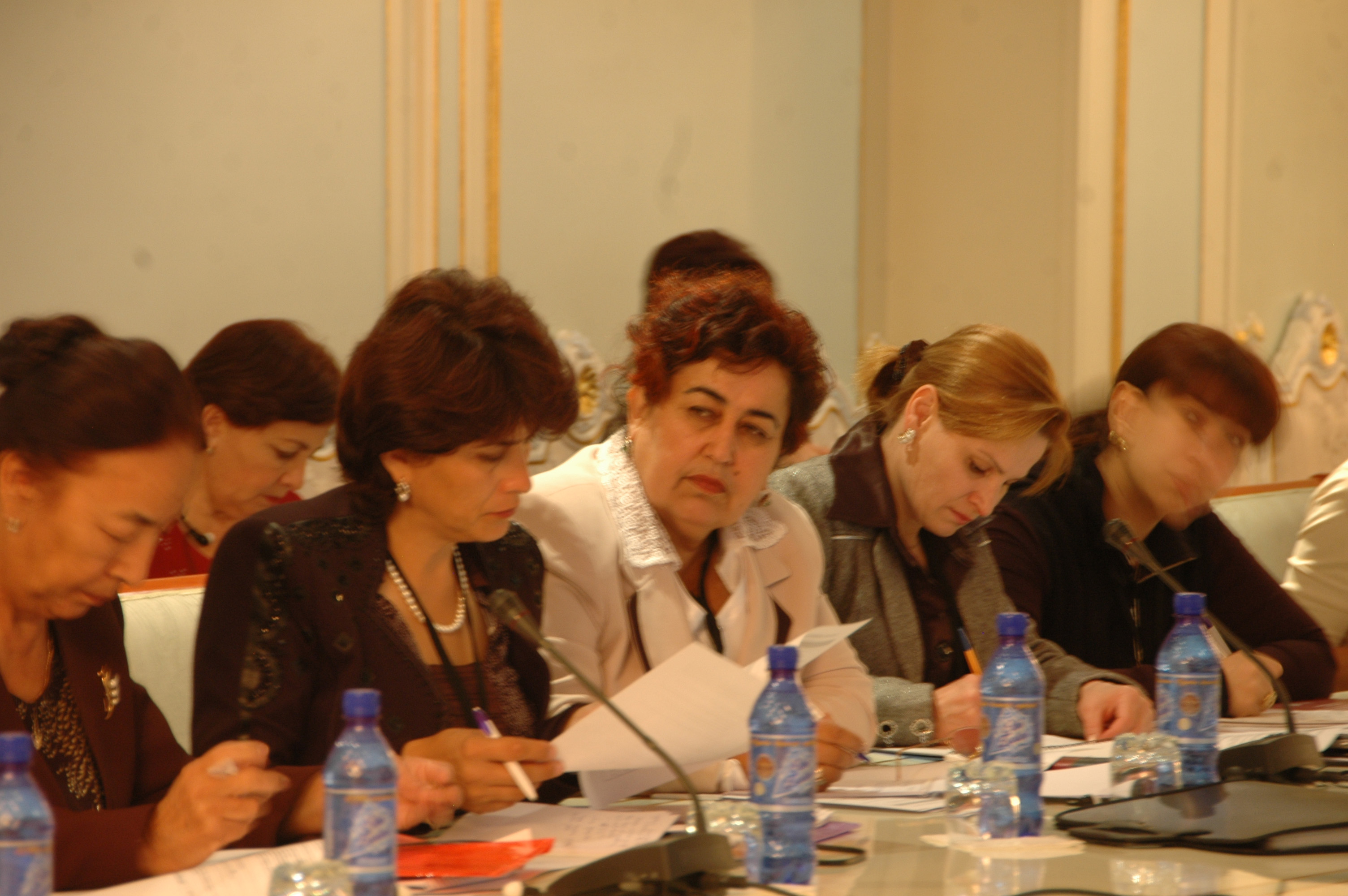 Alla Kuvatova (left) from the Tajik Association of NGOs on gender equality and Rosa Logar from the Domestic Abuse Intervention Centre in Vienna at the OSCE seminar on innovative approaches to combating violence against women, Dushanbe, 20 October 2008.
