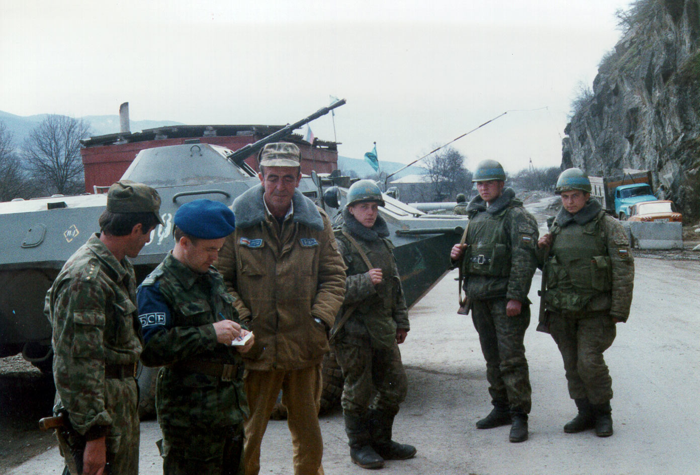 Members of the CSCE Mission to Georgia with Russian soldiers and