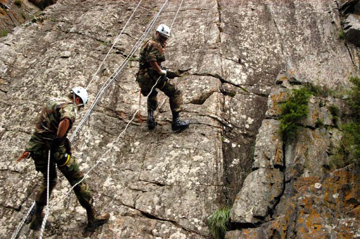 On Mount Kazbegi, Georgian border guards demonstrate techniques they learned at a four-week Training Assistance Programme run by the OSCE Mission to Georgia, 11 July 2005.
