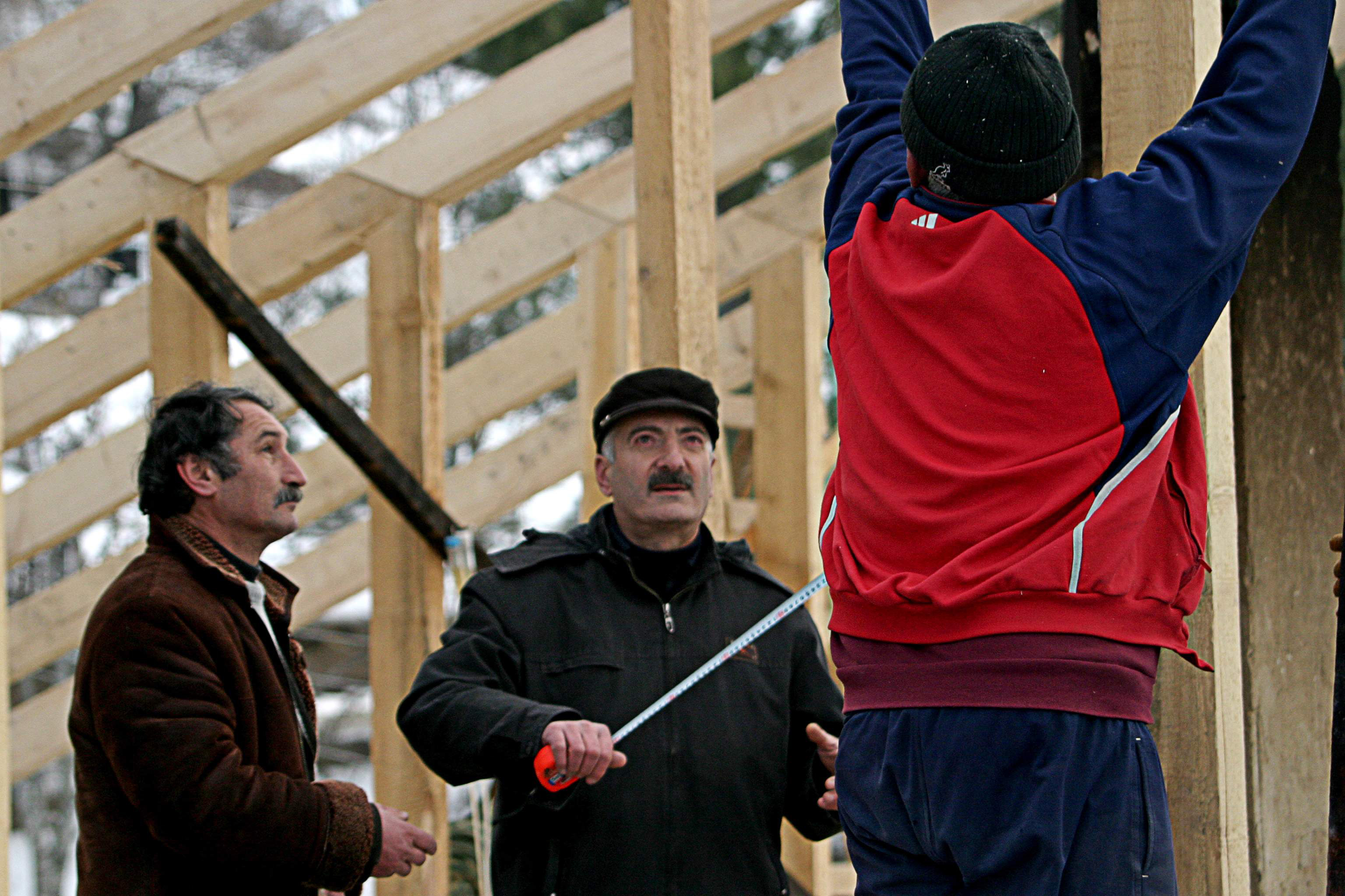Workers from Ossetian contractor Bessarion carry out urgent renovations to a school in Dzari in the north of the Georgian-Ossetian zone of conflict - one of many projects by the OSCE Mission to Georgia-led Economic Rehabilitation Programme.