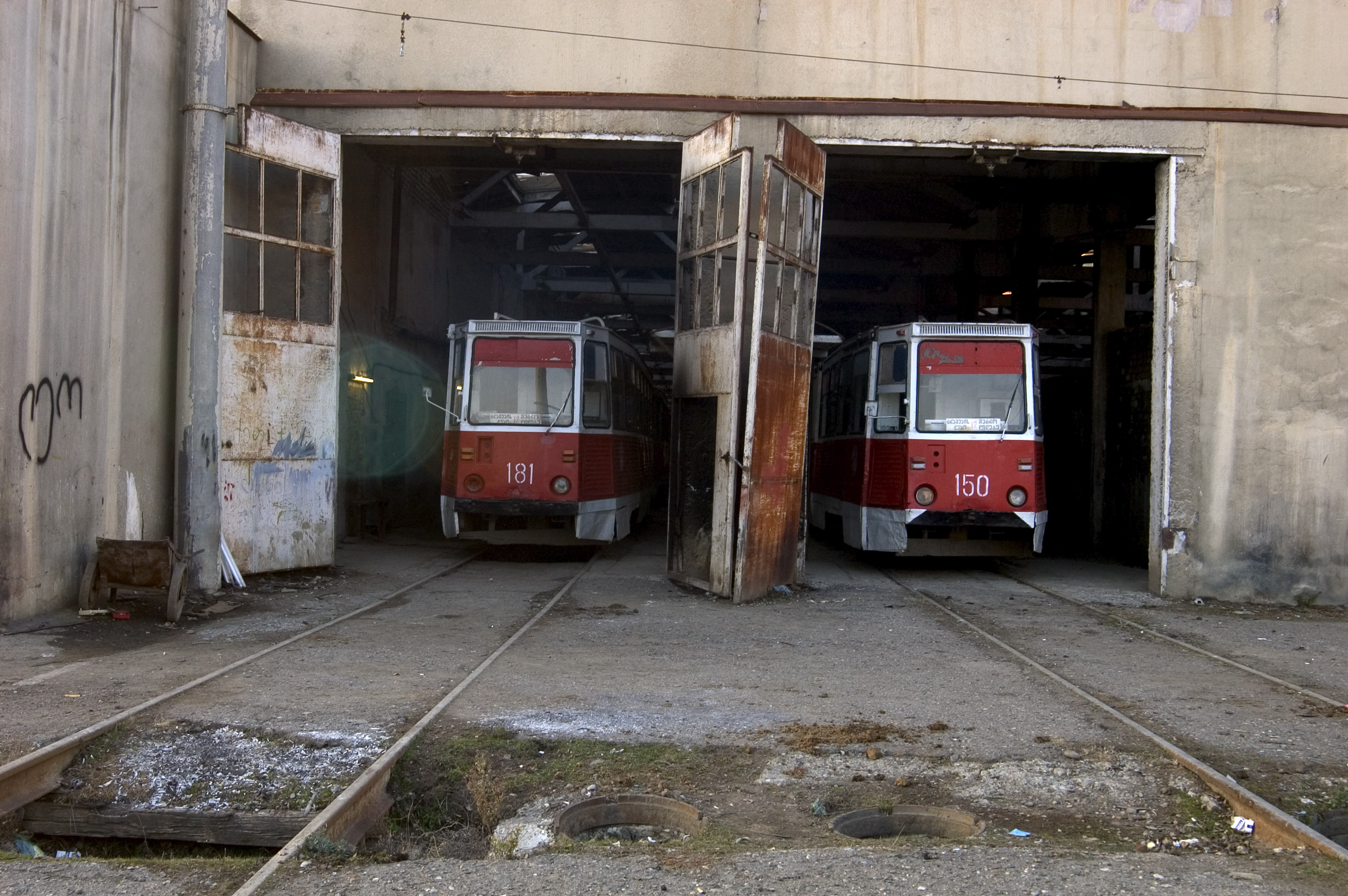 An abondoned tram depot in Tbilisi, 8 December 2006, after local authorities decided that trams in the Georgian capital were unprofitable.