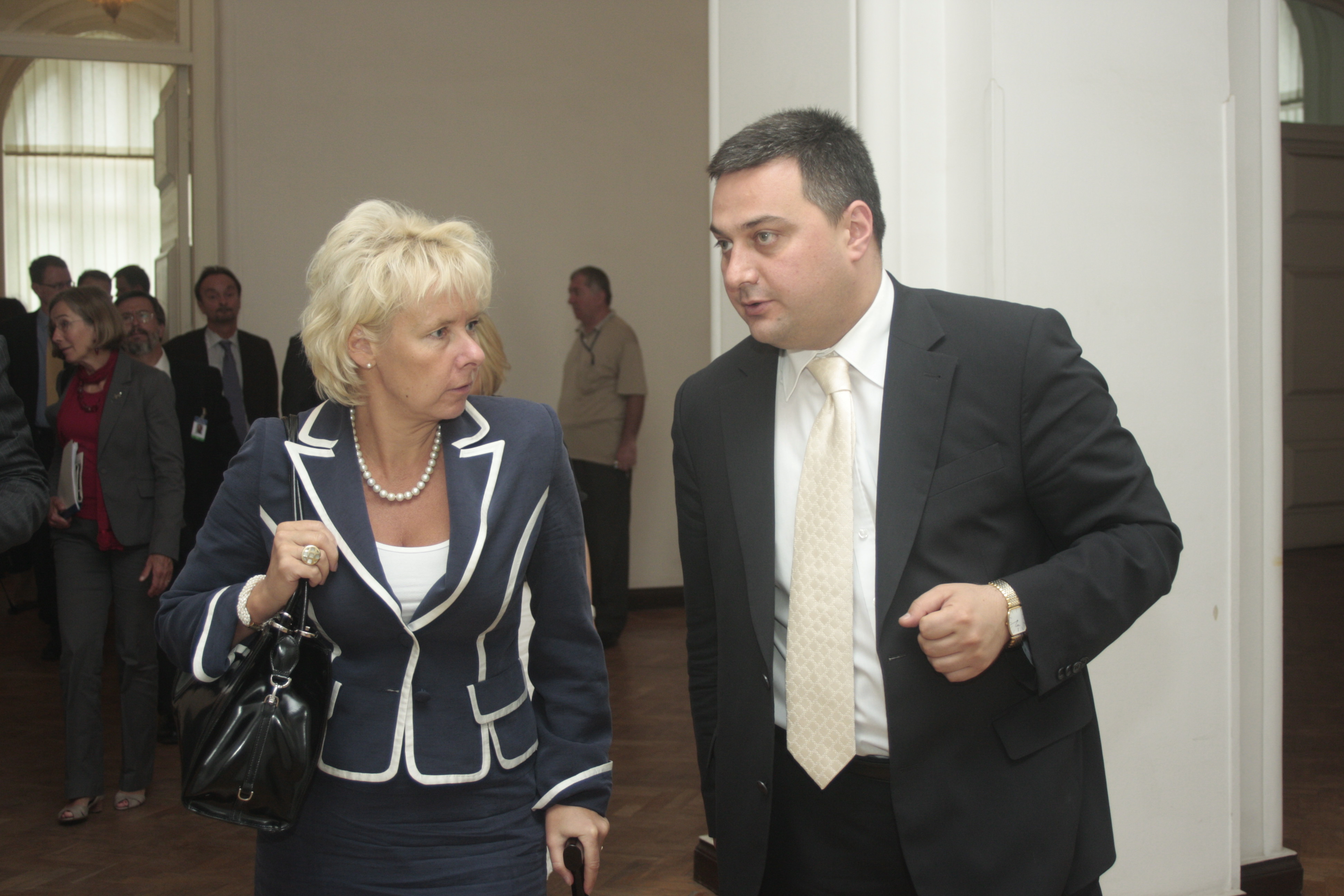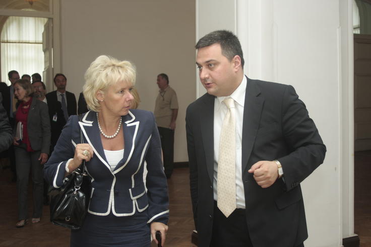 Ambassador Terhi Hakala (left), Head of the OSCE Mission to Georgia, and Georgian Ambassador to the OSCE, Victor Dolidze, in Tbilisi 7 July 2008.