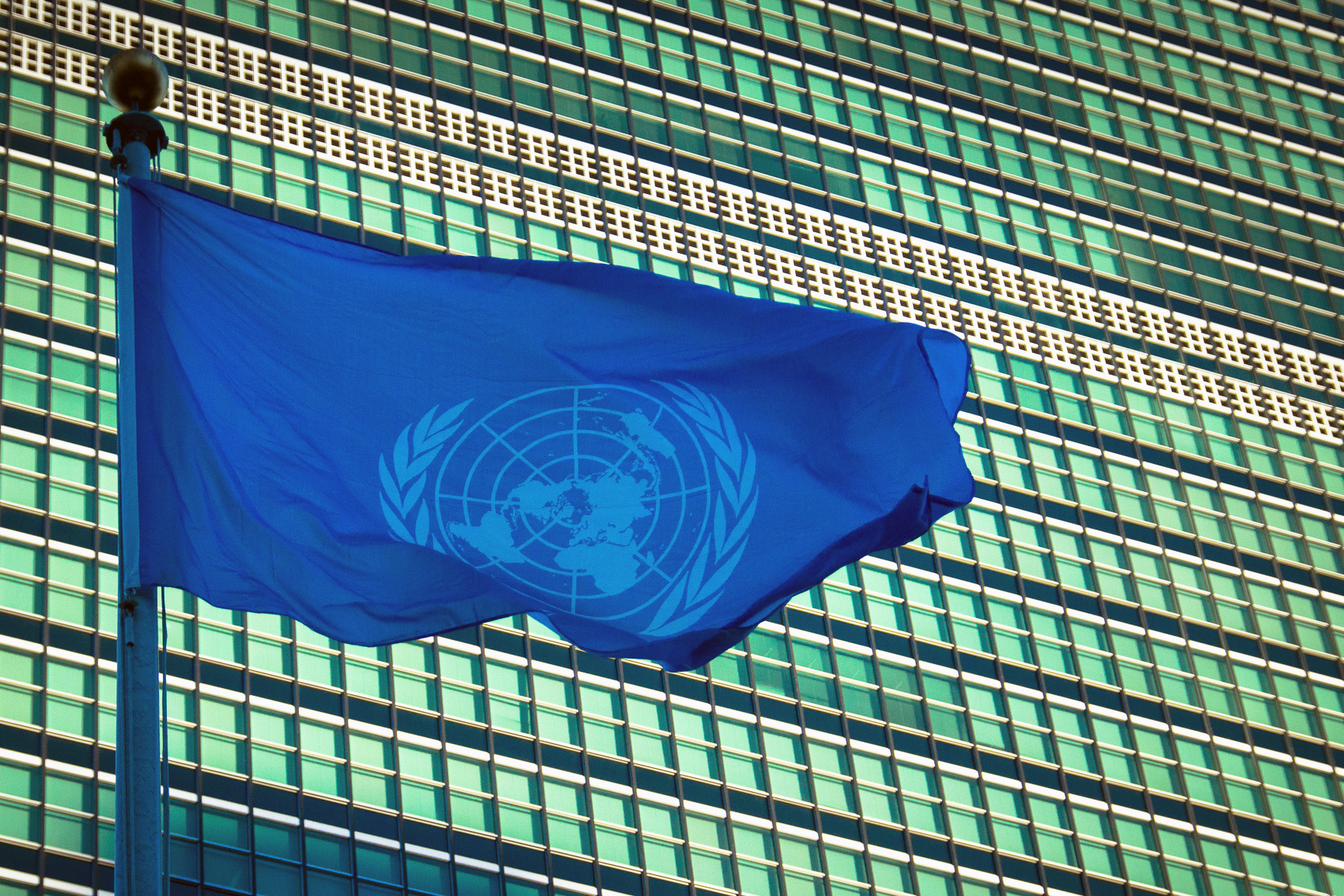 The flag of the United Nations outside their headquarters in New York.