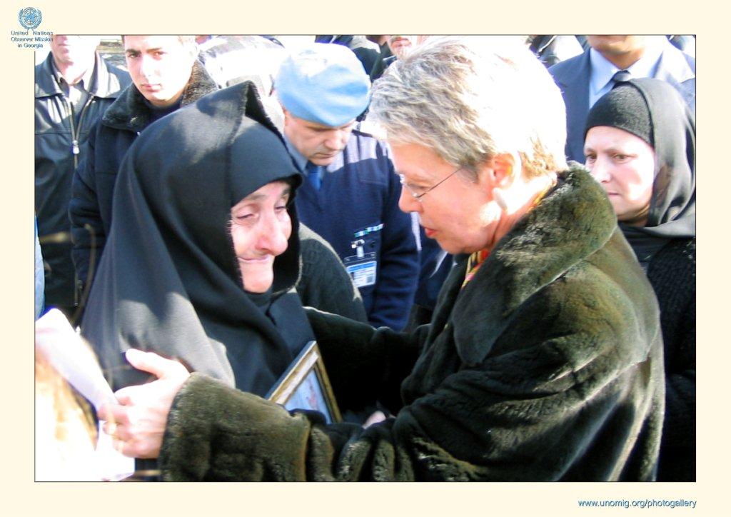 As Head of the UN Observer Mission in Georgia (UNOMIG), 2002-2006: At a commemorative ceremony after a multiple murder of militia men in a Georgian village.