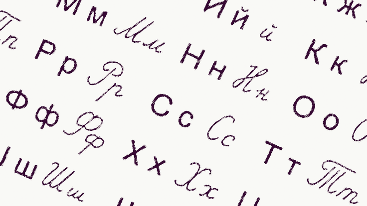 A graphic showing Cyrillic letters shared by both the Russian and Ukrainian alphabets.