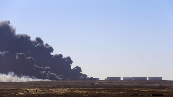 Black smoke billows out of a storage oil tank at the port of Es Sider in Ras Lanuf, 28 December 2014.