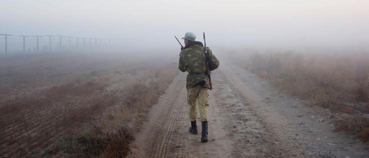 A trooper patrolling along the Afghan-Tajik border.
