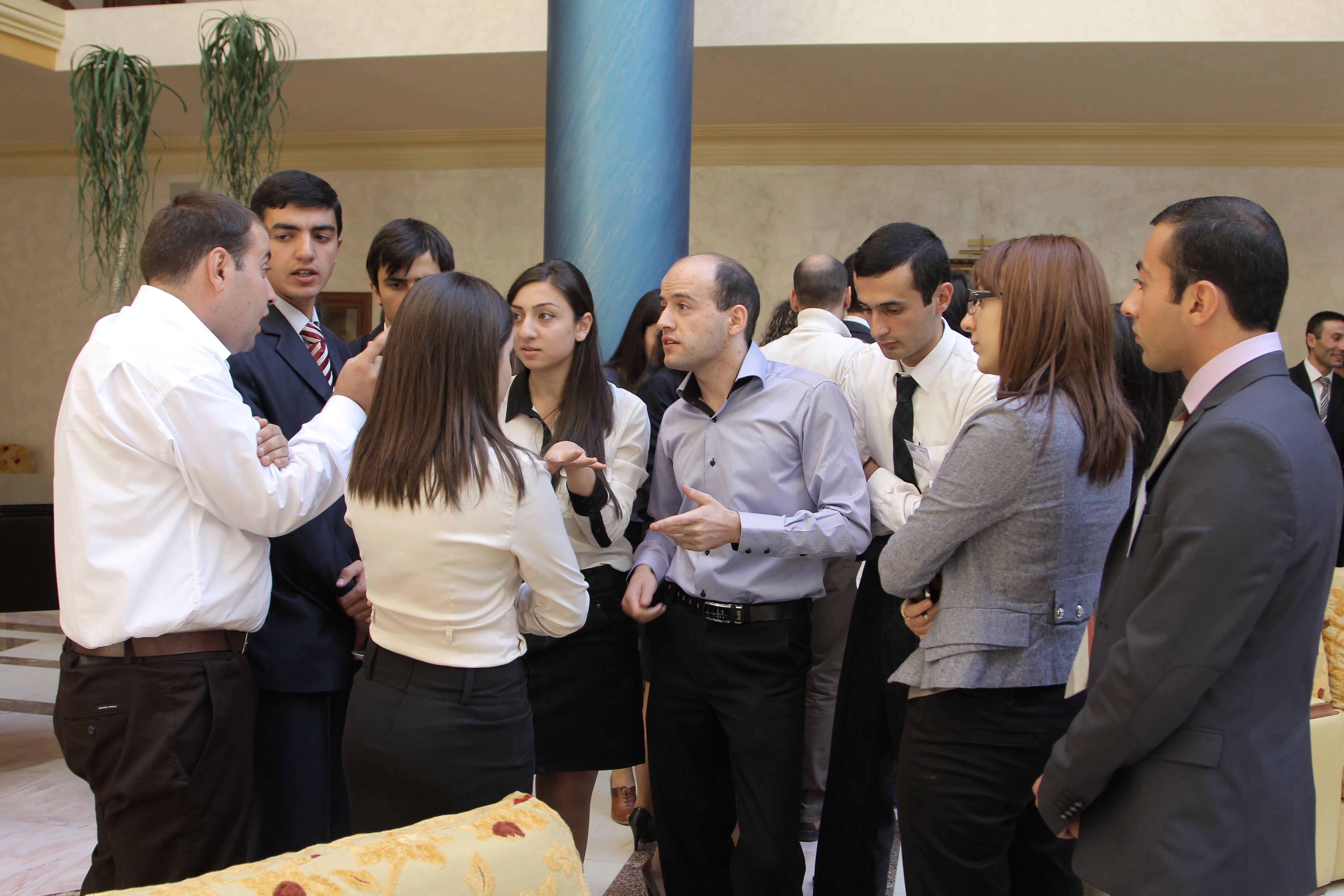 A group of participants from Model OSCE in discussion after the event which took place in Yerevan on October 11 2013