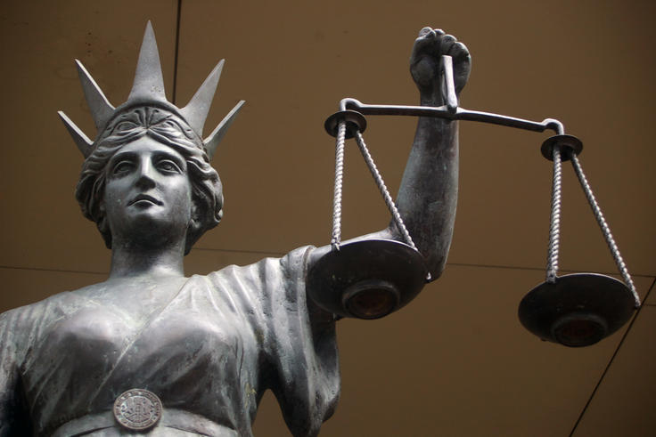 A statue outside the courts in Brisbane, Australia, 13 March 2010.