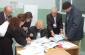 Members of the polling station at "Jeta e Re" Secondary School in Suhareke/Suva Reka Municipality prepare the register book before beginning the vote count during Kosovo's elections, 17 November 2007. (OSCE/Hasan Sopa)