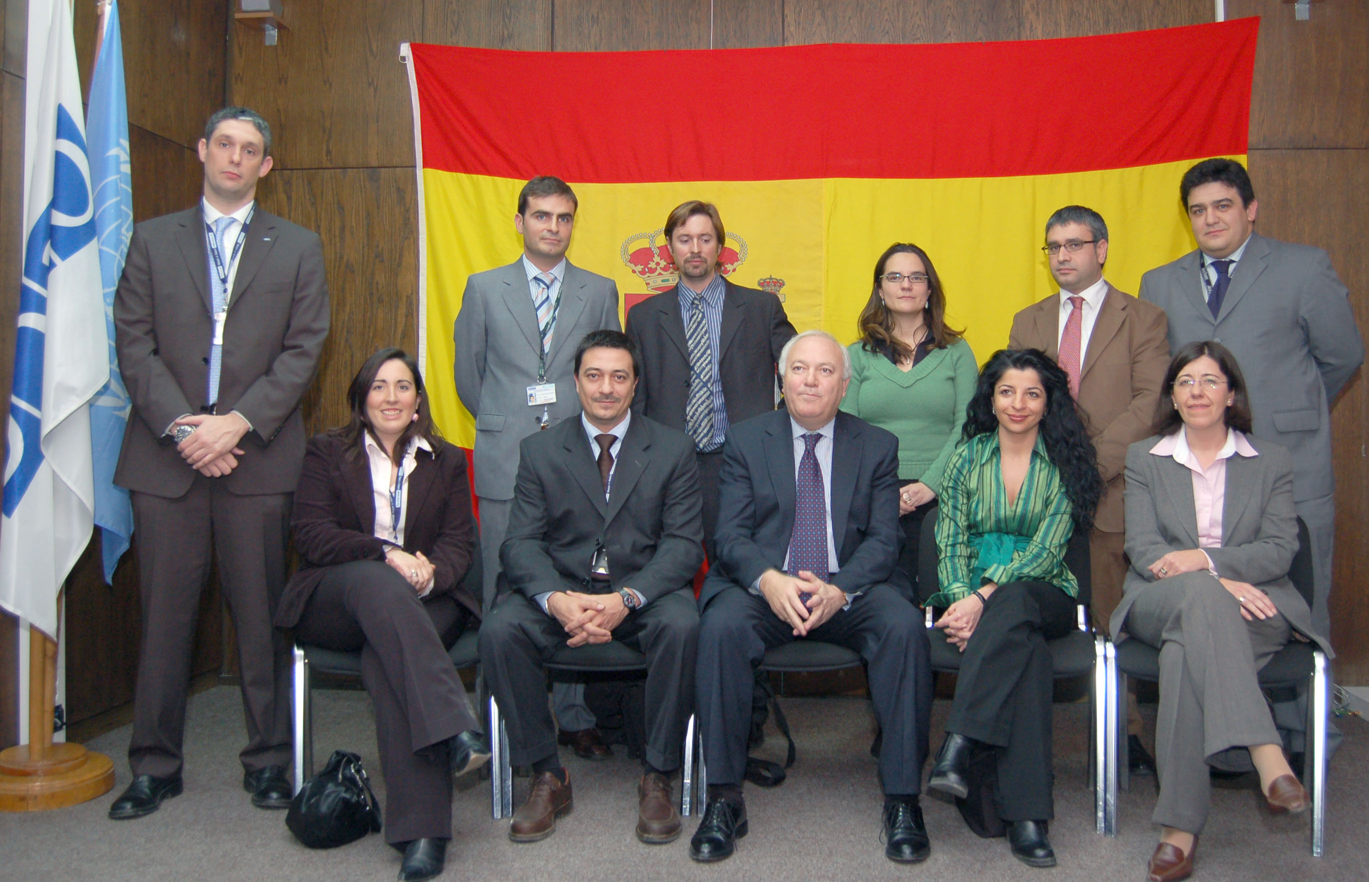 OSCE Chairman Miguel Angel Moratinos (seated, centre) in a family photo with Spanish staff members of the OSCE Mission in Kosovo, 27 February 2007.