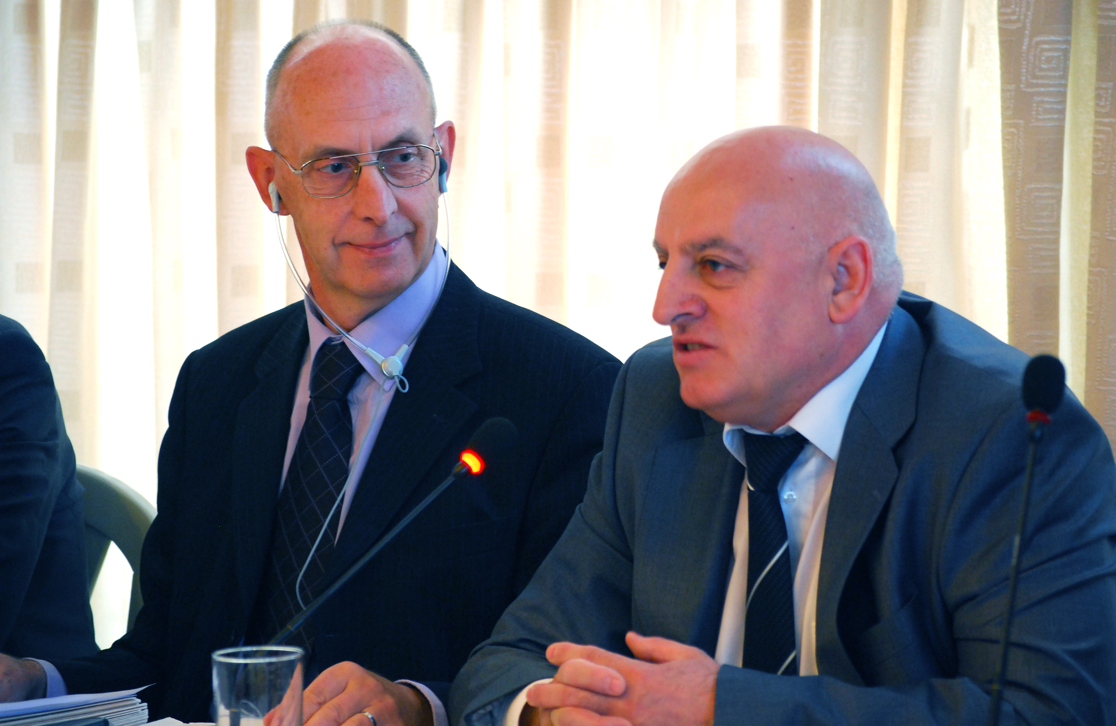 The Acting Chief Executive of Kosovo Education and Public Safety Centre Sheremet Ahmeti (r) and the President of the Association of European Police Colleges Mauricio Pettit at an Executive Committee Meeting of the Association of European Police Colleges (AEPC), Prishtine/Pristina, 5 April 2011.