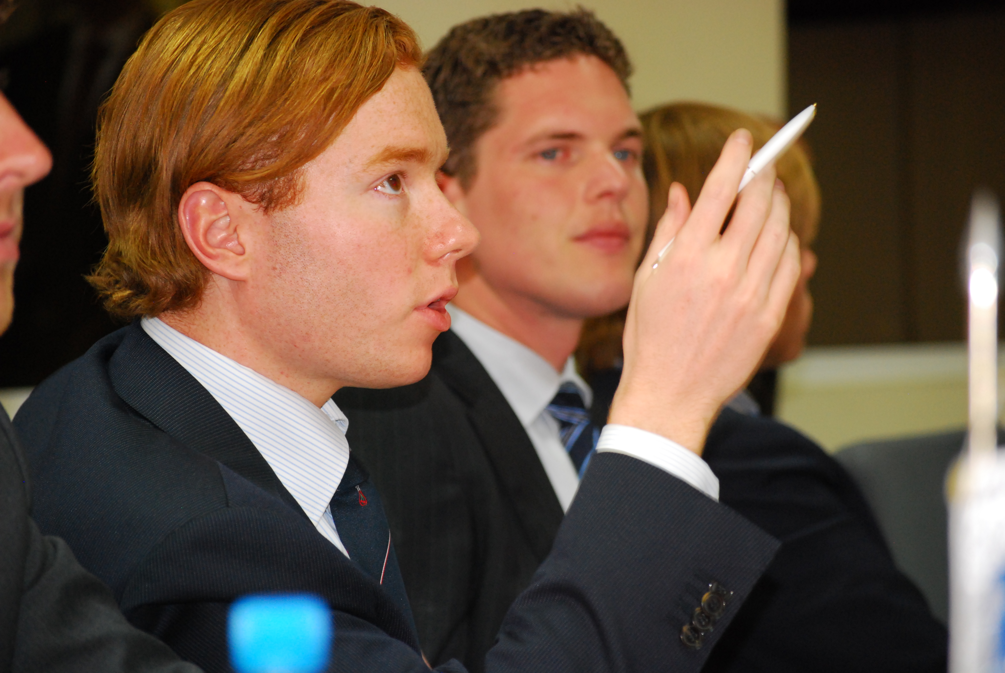 A student from the Telders Association, a Dutch student association, asks a question about the work of the OSCE Mission in Kosovo during a study trip to the region, Prishtinë/Priština, 29 April 2011.
