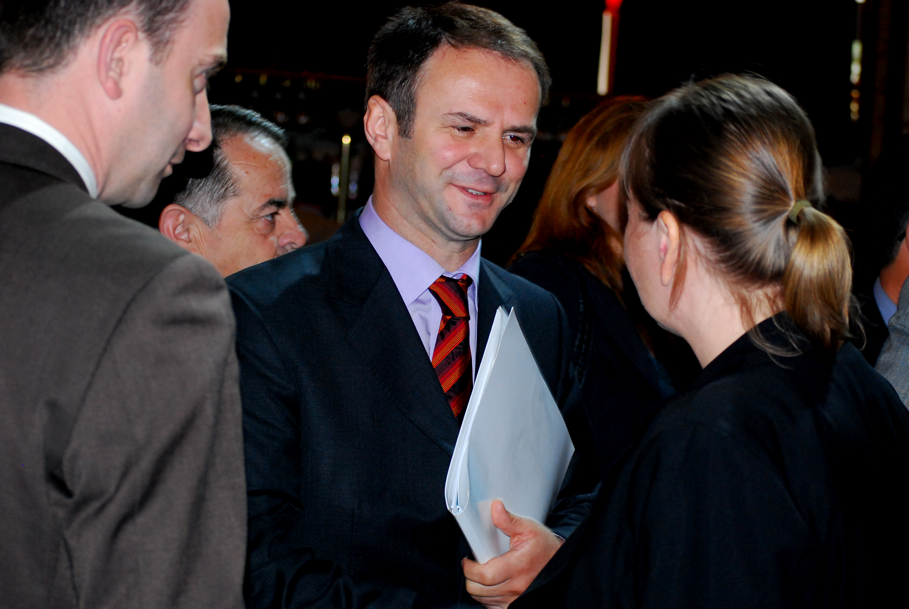 Susan Heinz (r), Director of the Mission’s Human Rights and Communities Department, talks to Deputy Prime Minister Hajredin Kuci at the signing of a co-operation agreement between the Kosovo Ombudsperson Institution, the Council for the Defence of Human Rights and Freedoms and the Kosovo Rehabilitation Centre for Torture Victims—supported by the OSCE Mission in Kosovo, Prishtinë/Priština, 10 May 2011.
