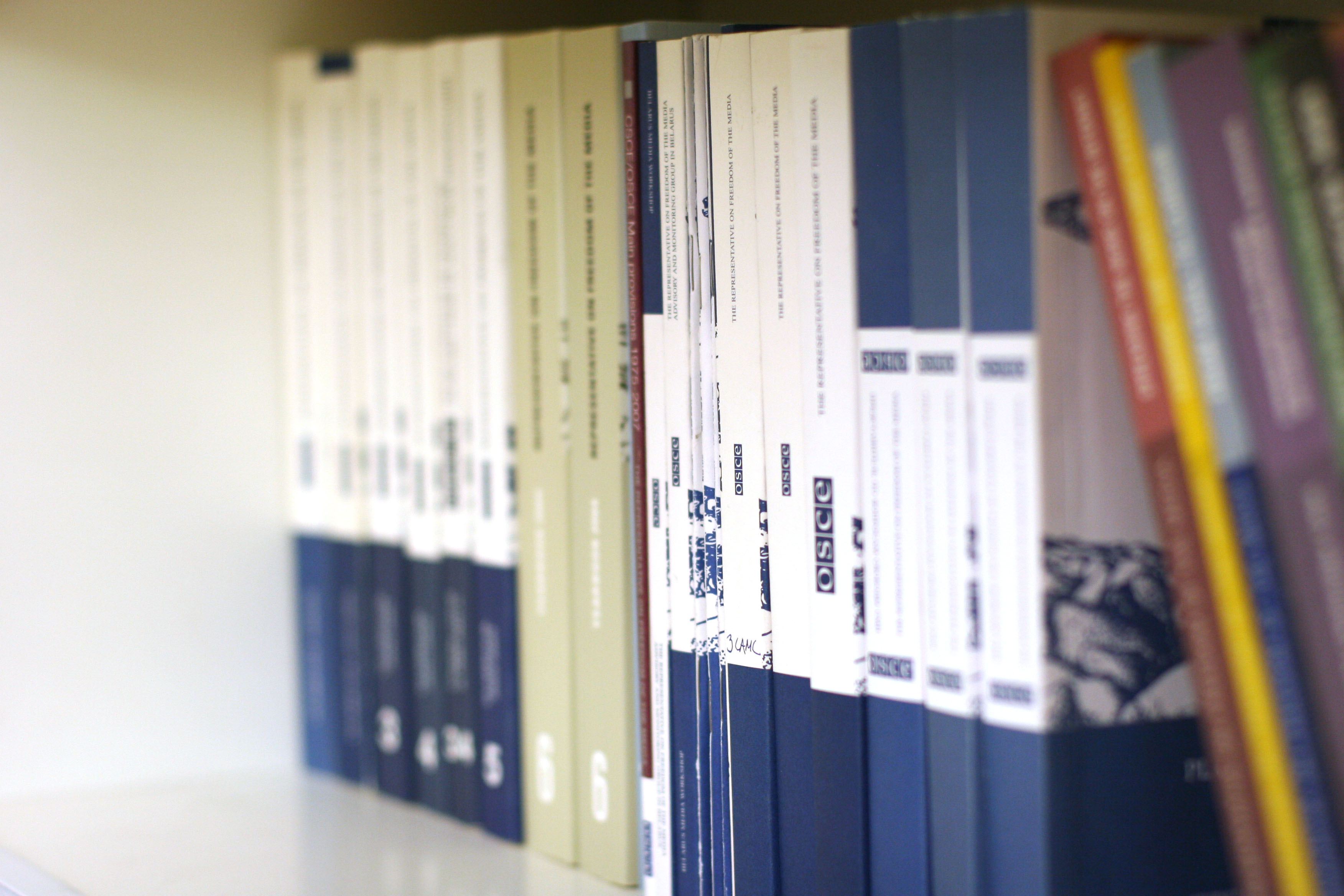 A section of the physical document library at the OSCE Secretariat in Vienna.