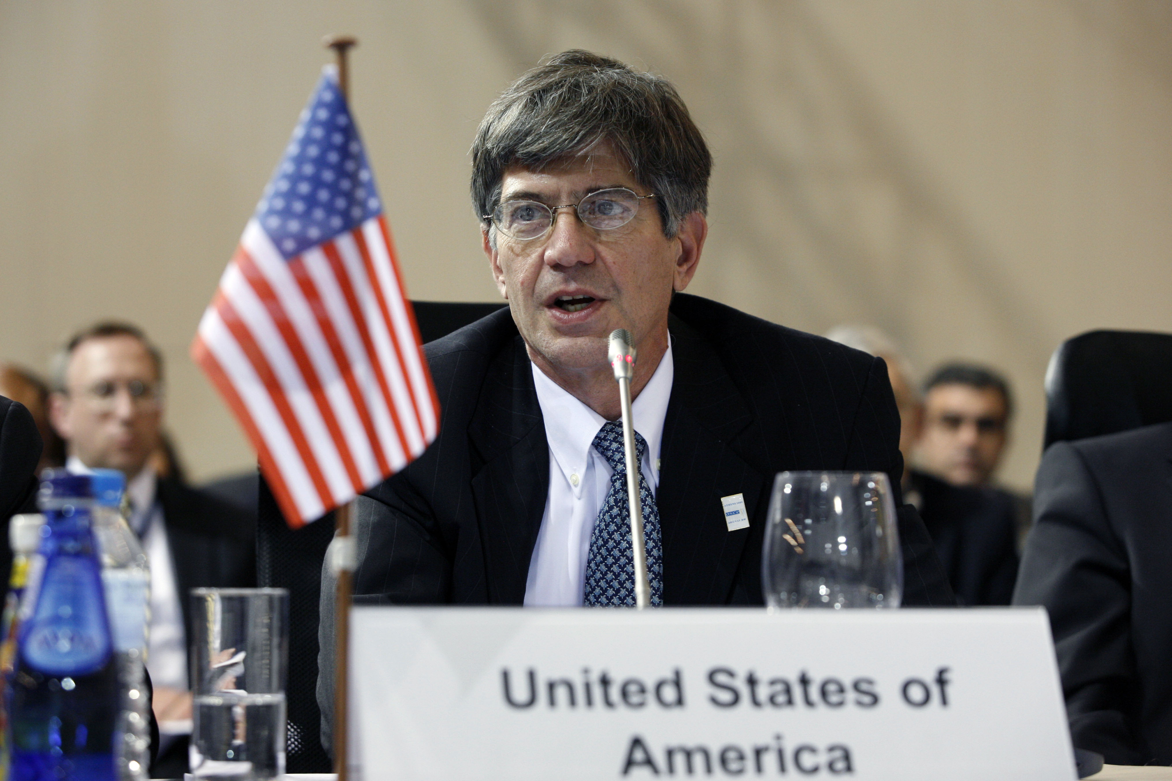 US Deputy Secretary of State James Steinberg addresses the first plenary session of the 17th OSCE Ministerial Council in Athens, 1 December 2009.