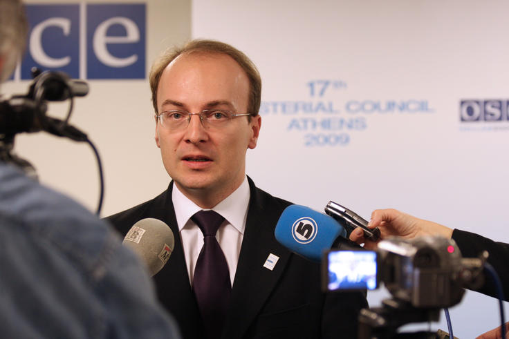 Antonio Milososki, Foreign Minister of the Former Yugoslav Republic of Macedonia, speaks with the media during the 17th OSCE Ministerial Council, Athens, 2 December 2009.