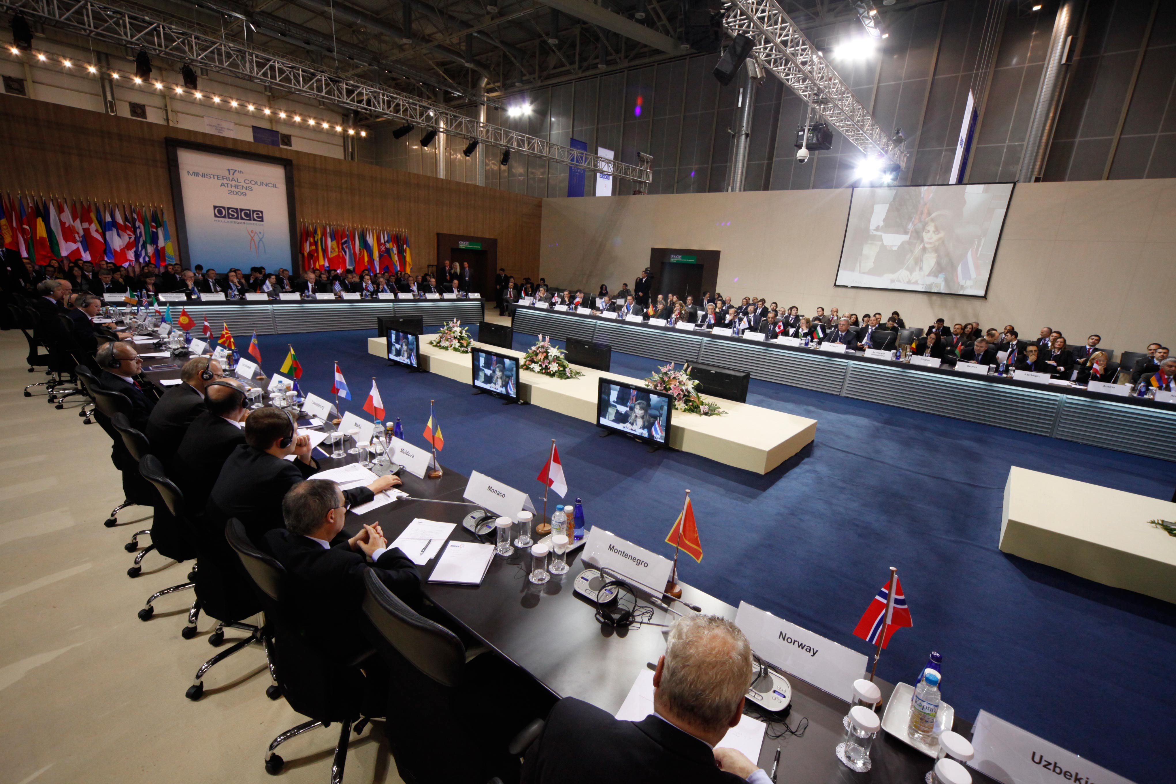 The closing session under way at the 17th OSCE Ministerial Council, Athens, 2 December 2009.