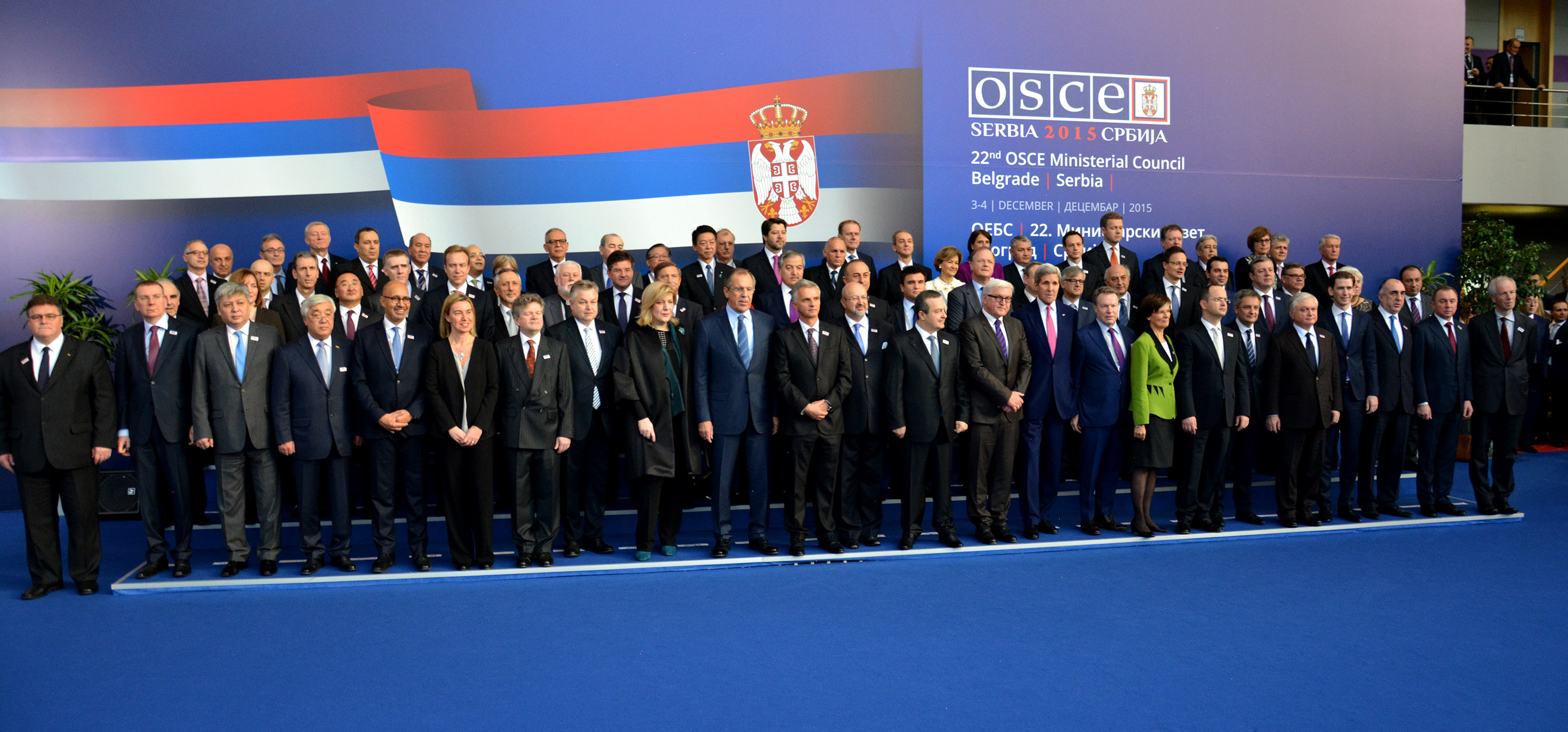 OSCE Foreign Ministers and Heads of Delegations pose for a family photo at the 2015 Ministerial Council in Belgrade, 3 December 2015.