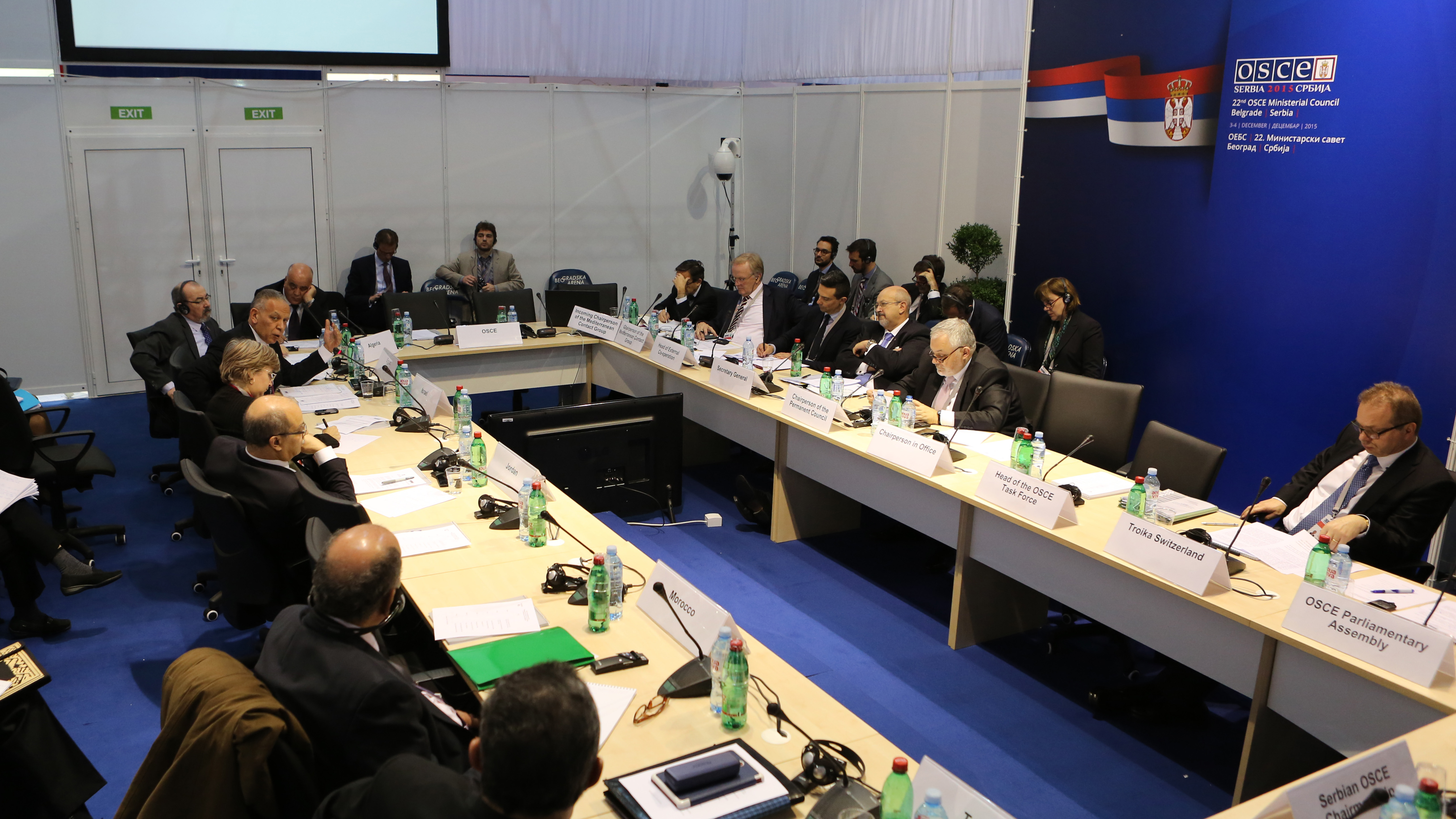 OSCE Secretary General Lamberto Zannier and representatives of the OSCE's Mediterranean Partners for Co-operation, meeting on the sidelines of the OSCE Ministerial Council in Belgrade, 3 December 2015.