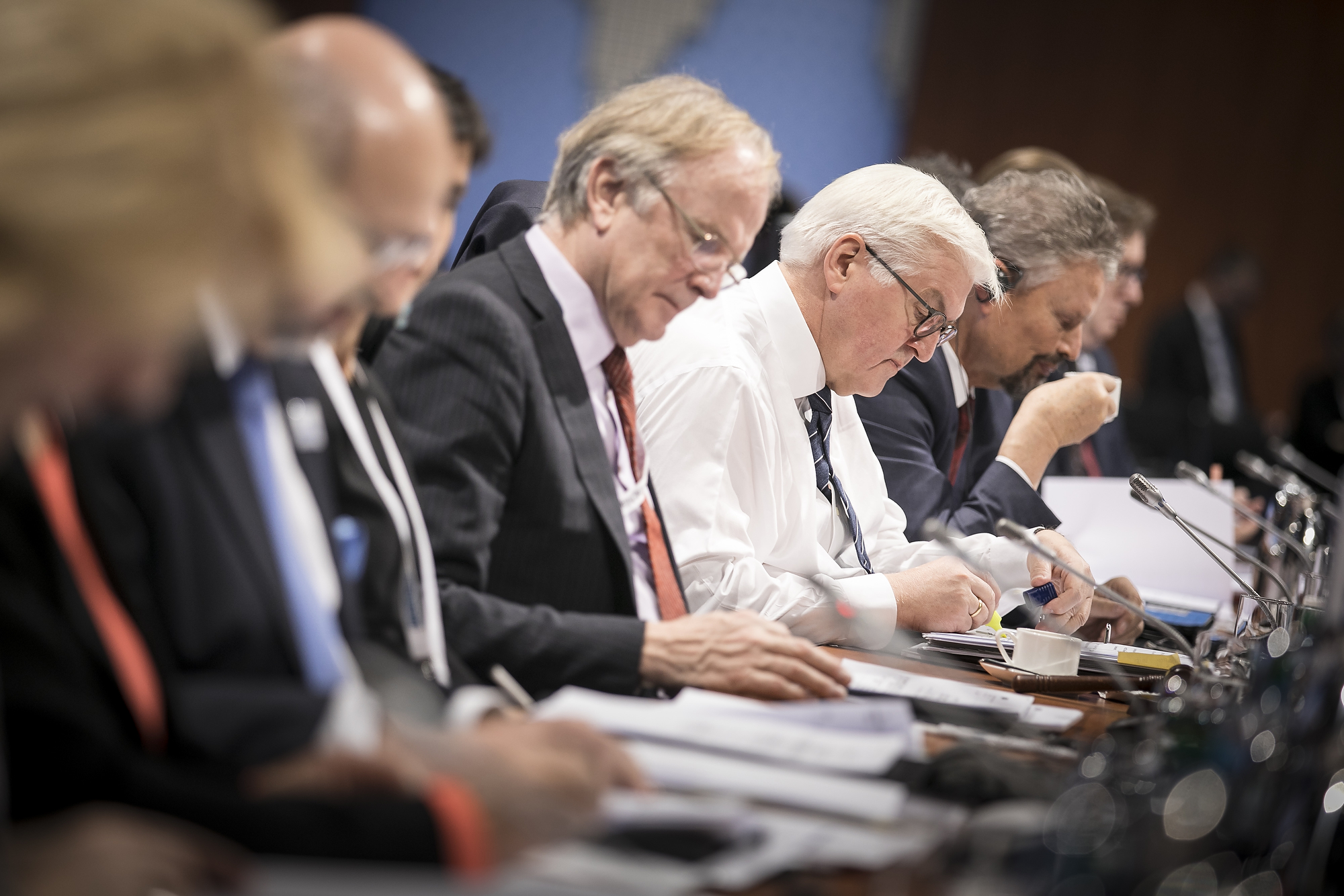 OSCE Chairperson-in-Office and German Foreign Minister Frank-Walter Steinmeier working at the 23rd OSCE Ministerial Council, Hamburg, 8 December 2016.