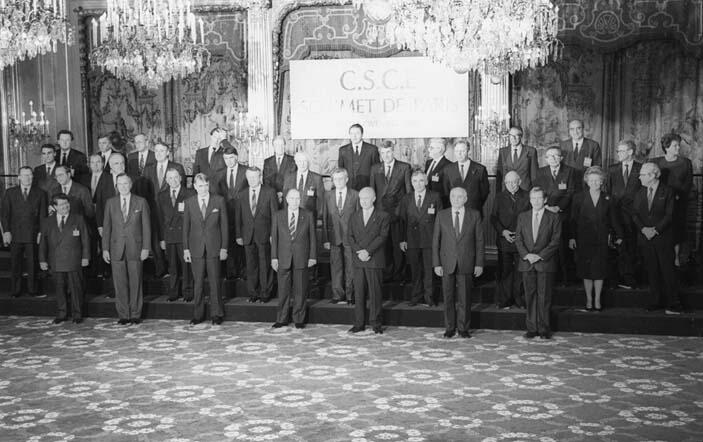 Family photo of the Heads of State or Government taking part at the Second CSCE Summit in Paris, 19-21 November 1990.