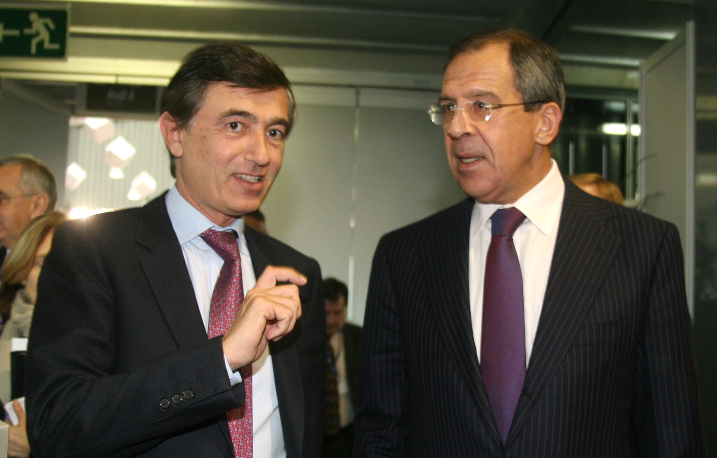 French Foreign Minister Philippe Douste-Blazy (left) and Russian Foreign Minister Sergey Lavrov at the 13th OSCE Ministerial Council in Ljubljana, 5 December 2005.