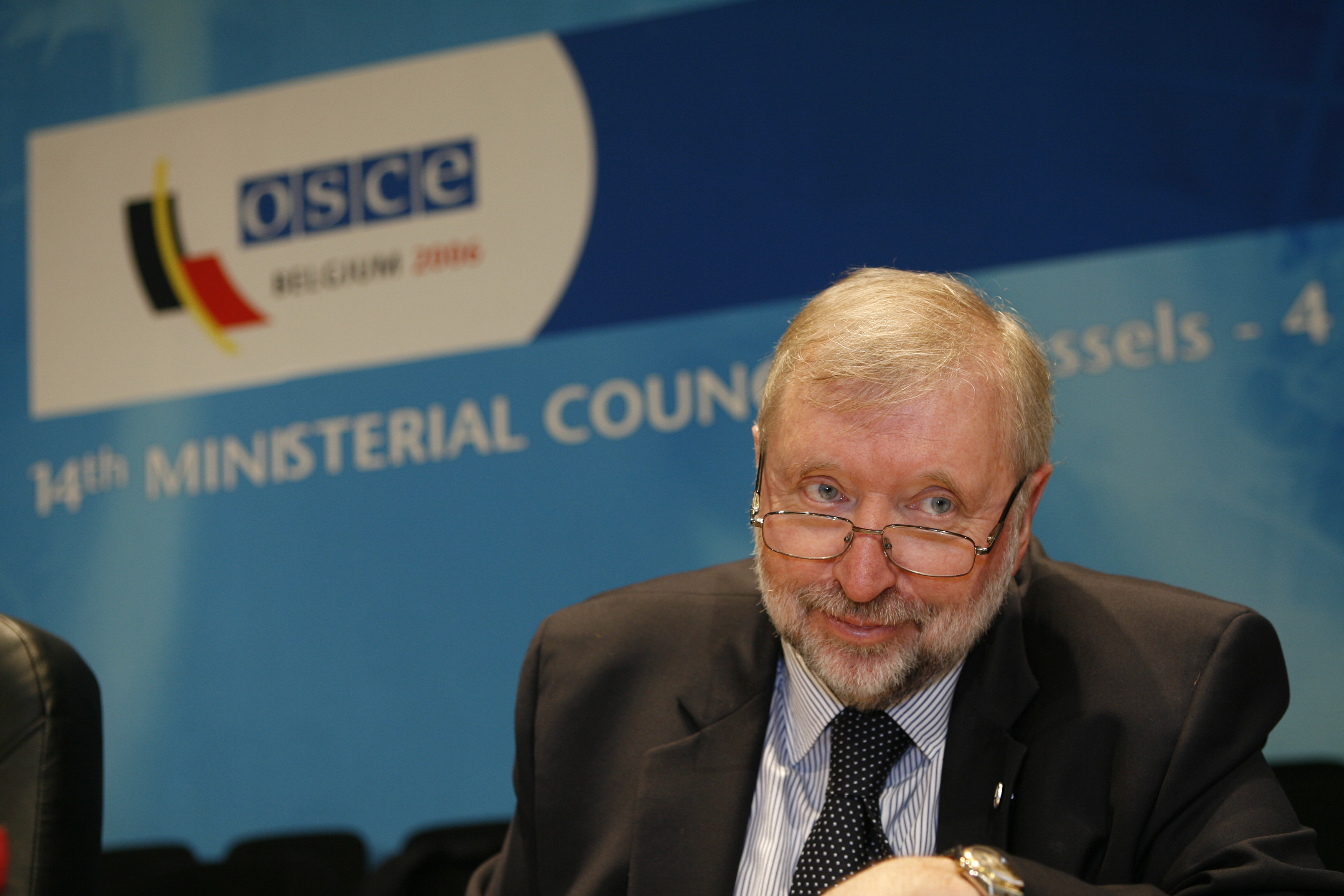 Slovenian Foreign Minister and OSCE Chairman-in-Office in 2005, Dimitrij Rupel, at the 14th OSCE Ministerial Council, Brussels, 4 December 2006.