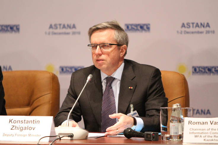Konstantin Zhigalov, Deputy Minister of Foreign Affairs of Kazakhstan, speaking at a press conference on the final day of the OSCE Review Conference, Astana, 28 November 2010.