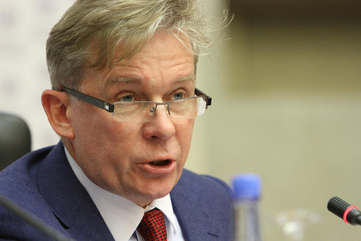 The OSCE Chairperson-in-Office, Lithuanian Foreign Minister Audronius Ažubalis, speaking at a press conference before the 18th OSCE Ministerial Council, Vilnius, 5 December 2011.