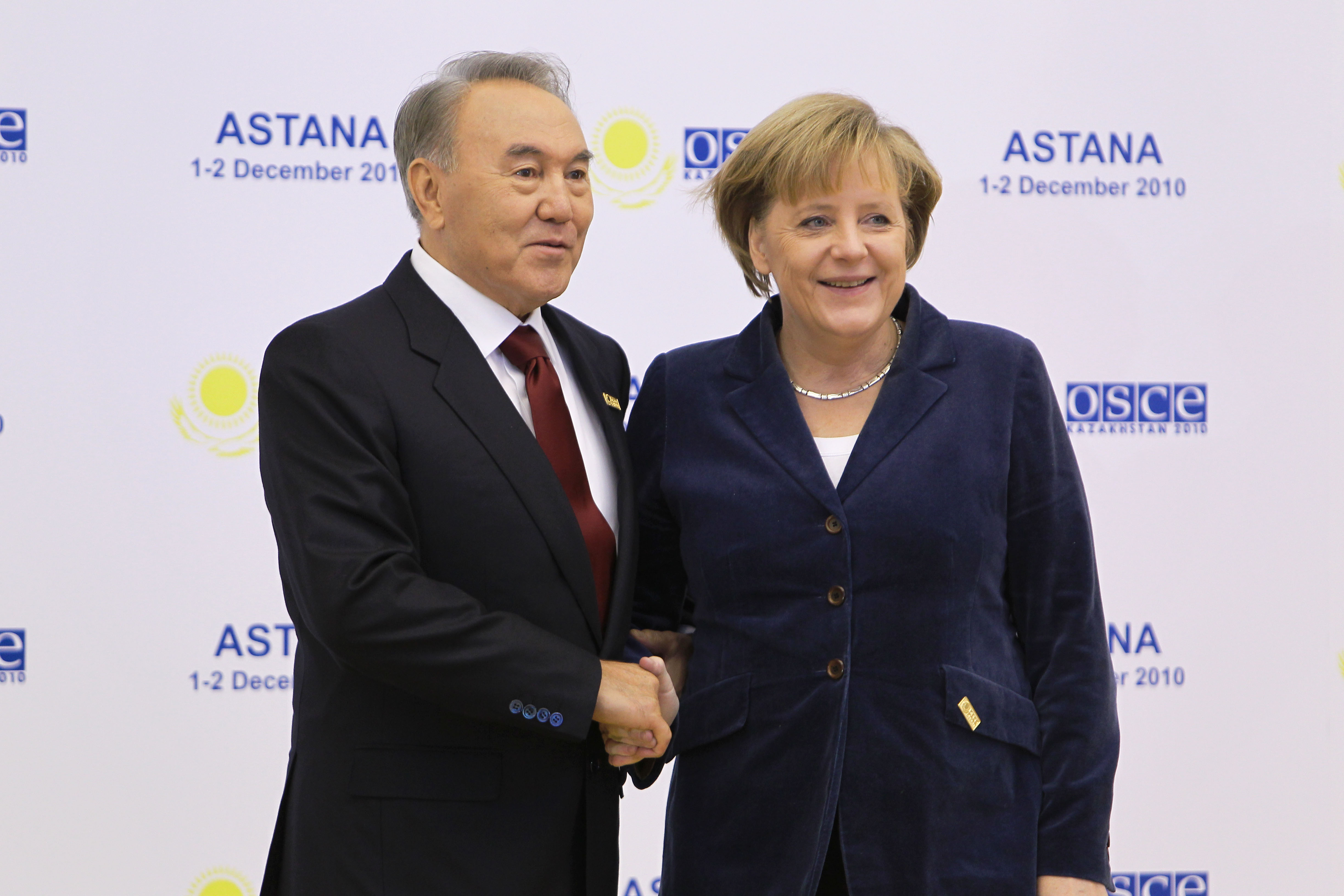 Angela Merkel, Federal Chancellor of Germany, is greeted by Kazakhstan’s President Nursultan Nazarbayev at the opening of the OSCE Summit in Astana, 1 December 2010.