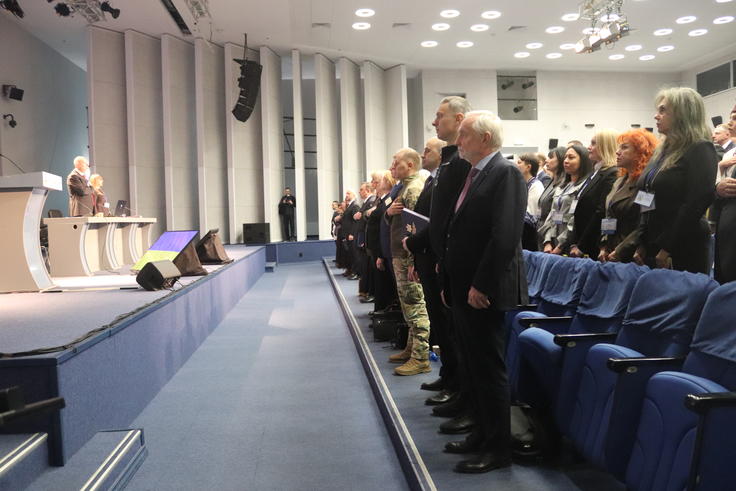 Ambassador Petr Mares, Special Representative of the OSCE Chairman-in-Office – Project Co-ordinator in Ukraine (right in the center), attends XX Congress of Judges where the newly approved Commentary on the Code of Judicial Ethics was presented.