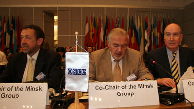 The two Ministers held a constructive meeting in a very frank and open-minded atmosphere which allowed the parties to pursue their talks on the document on "Basic principles for future settlement of the Nagorno-Karabagh conflict", proposed by the co-chairs for the Bucharest summit, supported by the G8 Heads of States and Governments in St Petersburg, which remain the core of the negotiations and the best chance to achieve a fair and sustainable Peace.