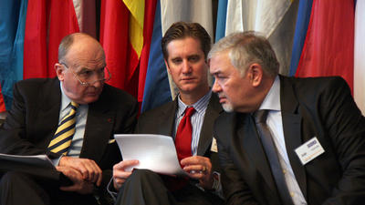 Ambassador Yuri Merzlyakov of the Russian Federation, Ambassador Bernard Fassier of France and Deputy Assistant Secretary of State Matthew Bryza of the United States, along with Ambassador Andrzej Kasprzyk, the Personal Representative of the OSCE Chairman-in-Office on the Nagorno-Karabakh conflict, talked to journalists after their address to the OSCE Permanent Council.
