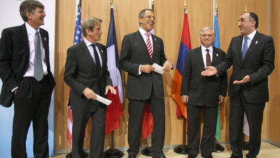 "The Heads of Delegation of the OSCE Minsk Group Co-Chair countries, Foreign Minister of the Russian Federation Sergei Lavrov, Foreign Minister of France Bernard Kouchner, and Deputy Secretary of State of the United States James Steinberg met in Athens on December 1 with the Foreign Minister of Azerbaijan Elmar Mammadyarov and Foreign Minister of Armenia Edward Nalbandian.
