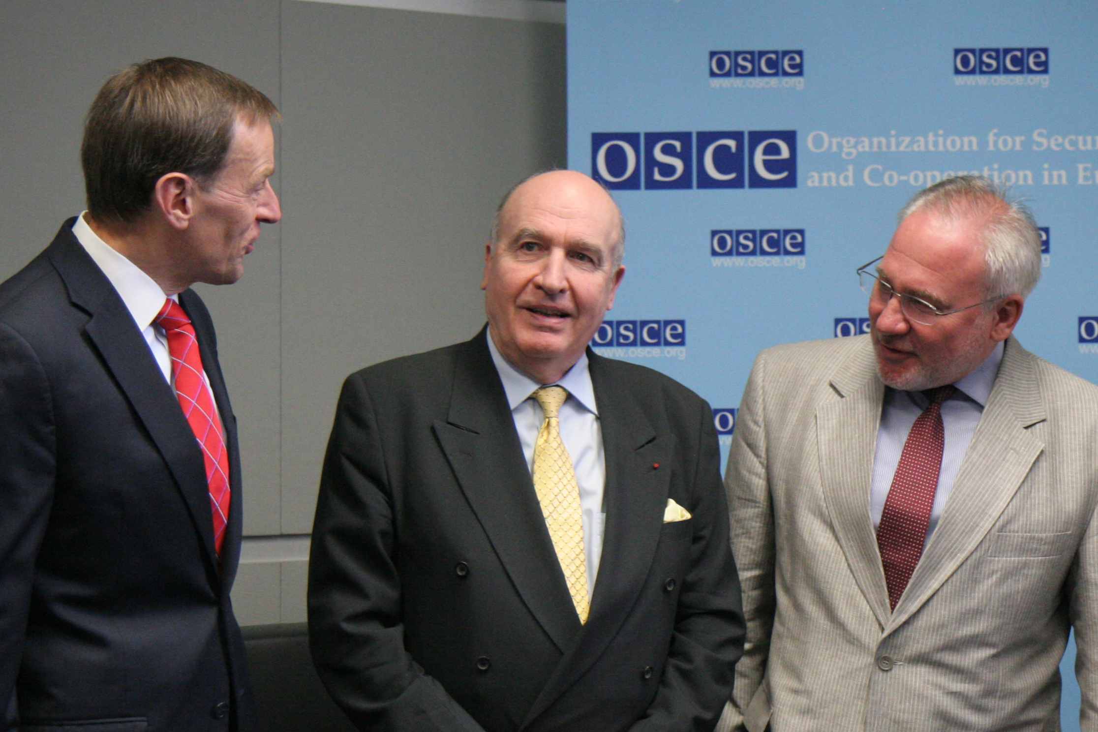 L-r: Co-chairs of the Minsk Group Ambassador Robert Bradtke of the United States, Ambassador Bernard Fassier of France and Ambassador Igor Popov of the Russian Federation, Vienna, 4 July 2011.