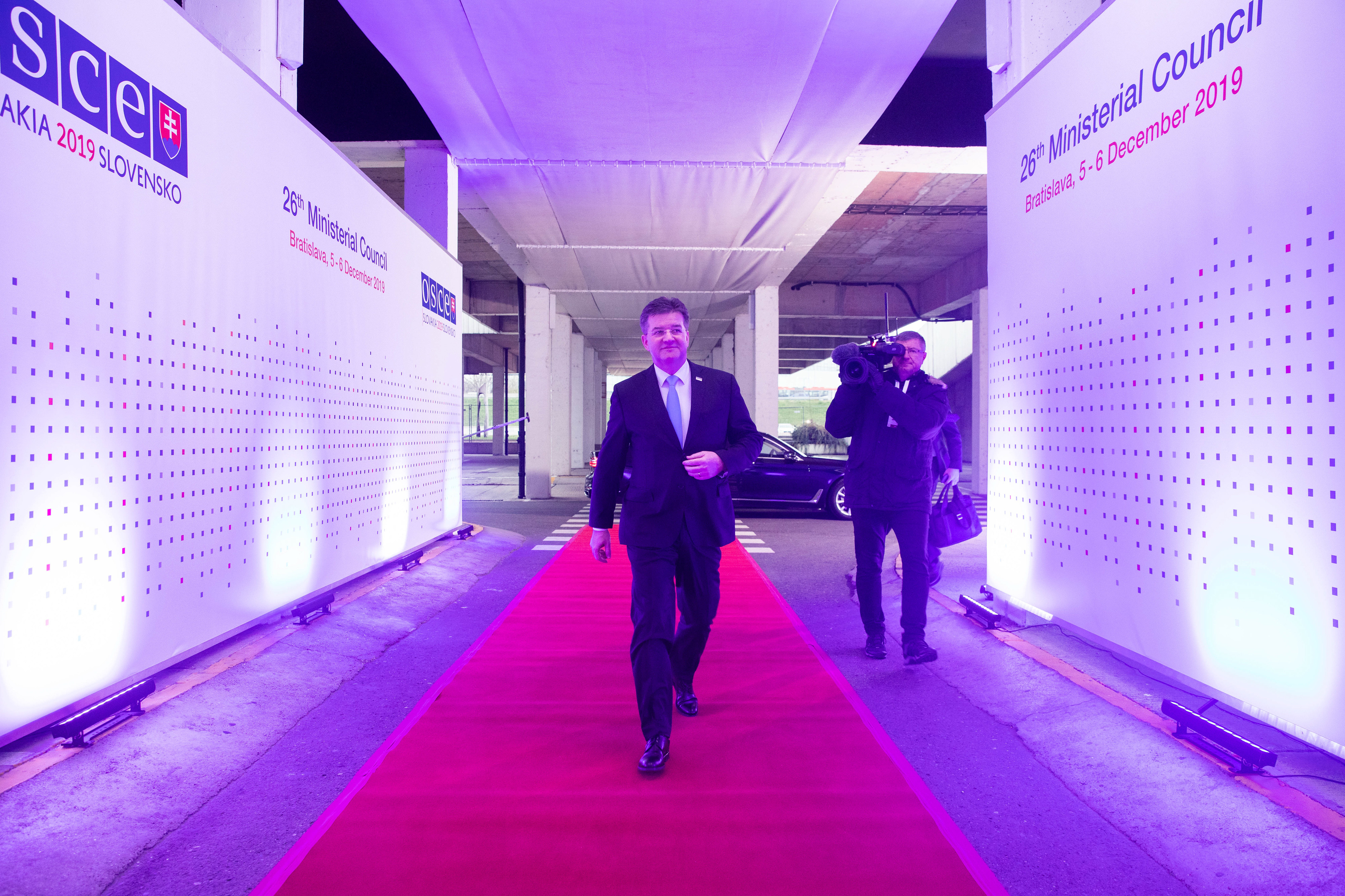 OSCE Chairperson-in-Office Miroslav Lajčák arriving to Incheba Expo Arena for the 26th OSCE Ministerial Council, Bratislava, 5 December 2019.