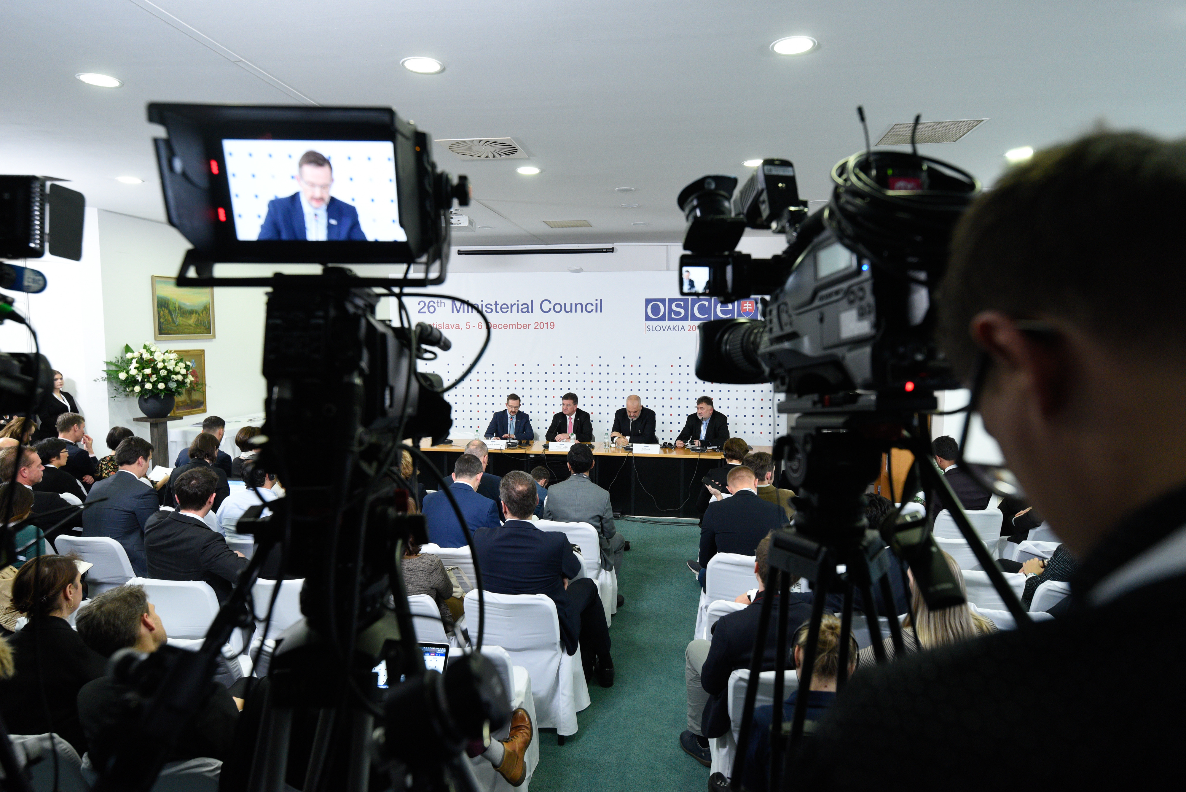 OSCE Secretary General Thomas Greminger speaking during the final press conference, 26th OSCE Ministerial Council, Bratislava, 6 December 2019.