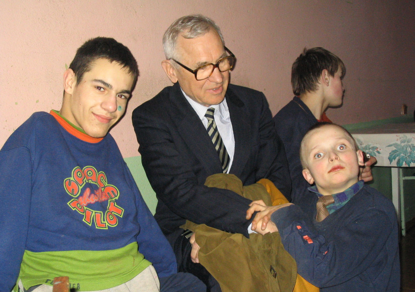 Ambassador Eberhard Heyken, Head of the OSCE Office in Minsk, with disabled children during a charity visit to an orphanage in Mogilev region, part of the "Chernobyl Children's project", in April 2004.