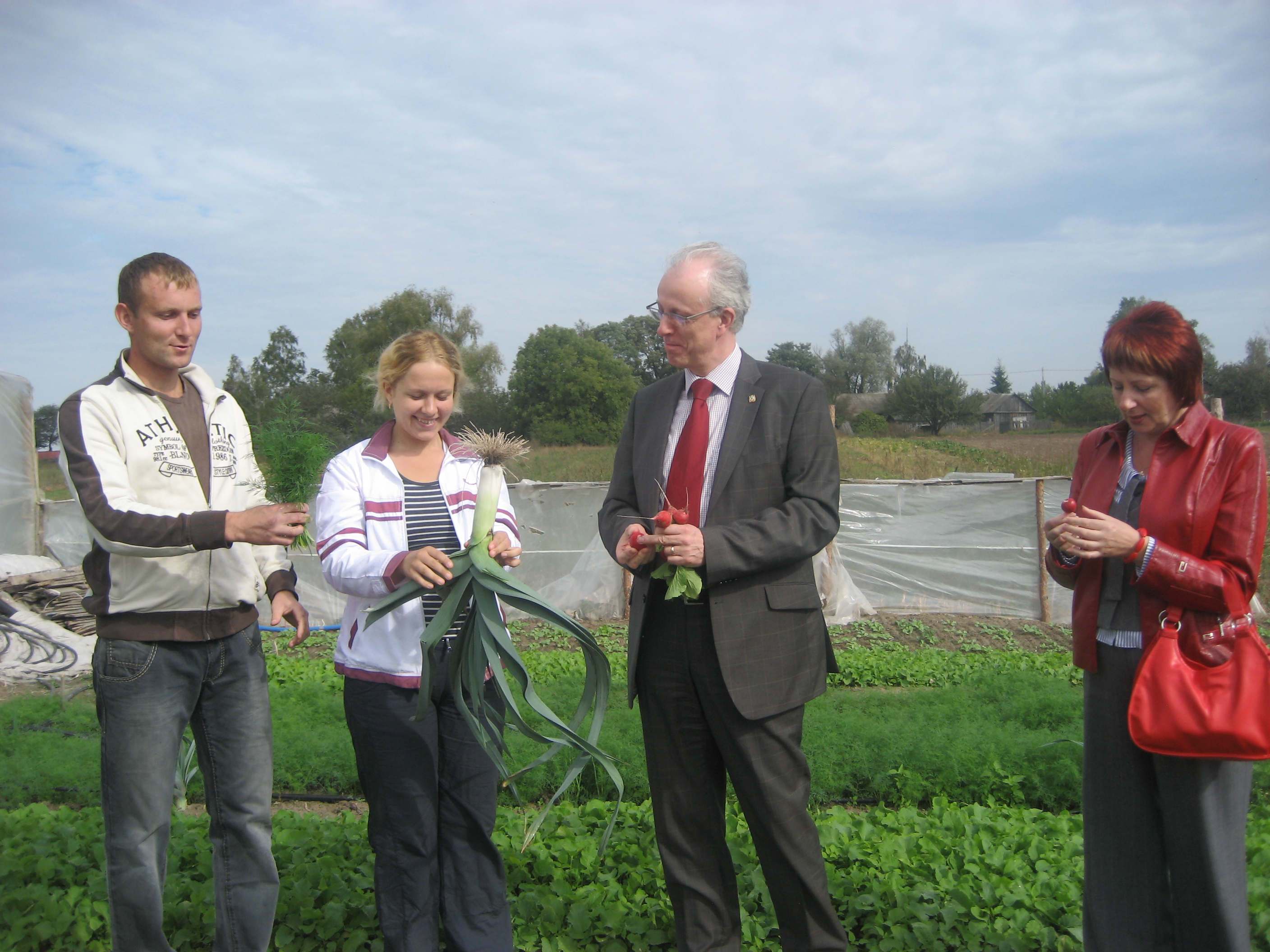 Ambassador Benedikt Haller (2nd right), Head of the OSCE Office in Minsk, during a field trip to monitor a project in Bragin district on OSCE support for rural development in Belarus, 16 September 2010.