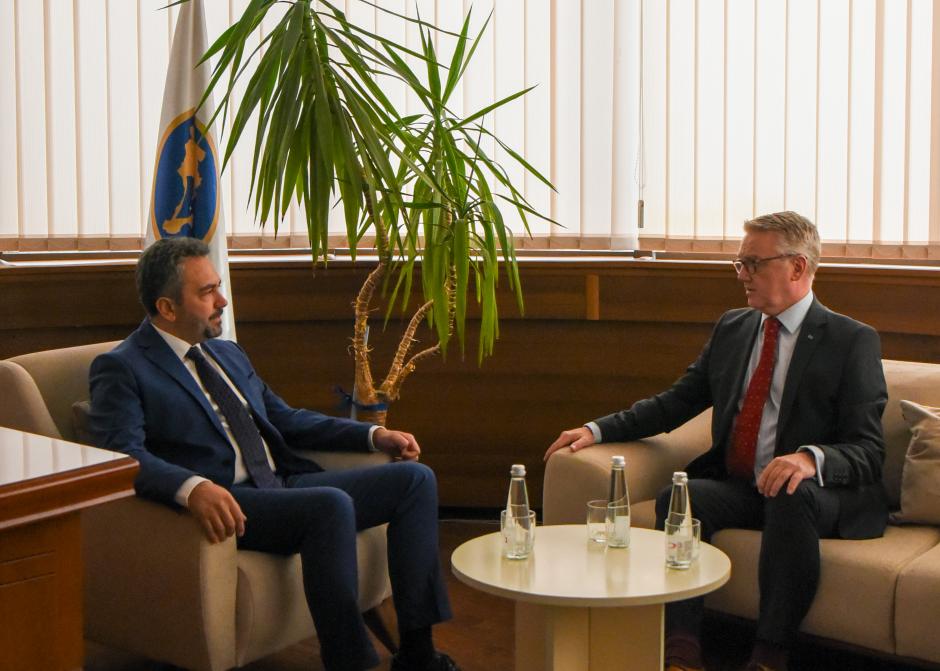 The Head of the OSCE Mission in Kosovo Ambassador Gerard McGurk and Central Election Commission Chair Kreshnik Radoniqi during their meeting ahead of the 12 October 2025 local elections, Prishtinë/Priština, 10 october 2025.